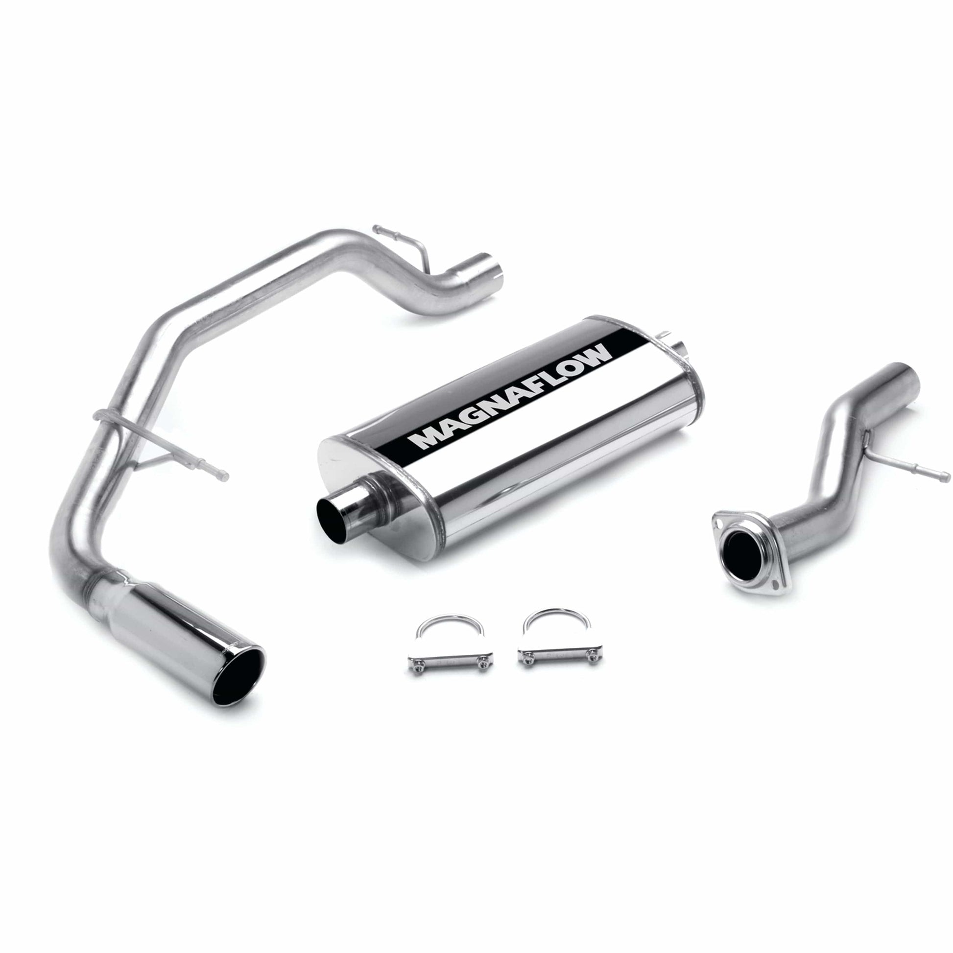 The MagnaFlow Street Series Cat-Back Performance Exhaust System 15666 brings out the personality of your SUV with our signature resonant, powerful engine tone and dyno-proven performance. Thanks to its fast-flowing, mandrel bent 3in. main piping and 1 Straight-Through mufflers ending in a Single Passenger Side Rear exit with 4in. Polished Welded-On Single Wall Angle Cut Rolled Edge tips, this SUV exhaust kit has the performance chops to match its sporty sound and appearance. Upgrade your ride to the next level with an exhaust that has the pipes to put other SUV's to shame. With this system your vehicle will be producing Moderate exterior and Mild interior sound levels while leaving other cars and trucks feeling envious at every stoplight. Exhaust kit 15666 features a cat-back layout that replaces your ride's stock exhaust components from near the catalytic converter on back. Extensive 3D scanning during development has resulted in a direct-fit design that you can easily install yourself. 15666 is produced using CNC precision robotic manufacturing techniques and is backed by MagnaFlow's 1-year limited finish warranty and limited lifetime construction warranty.