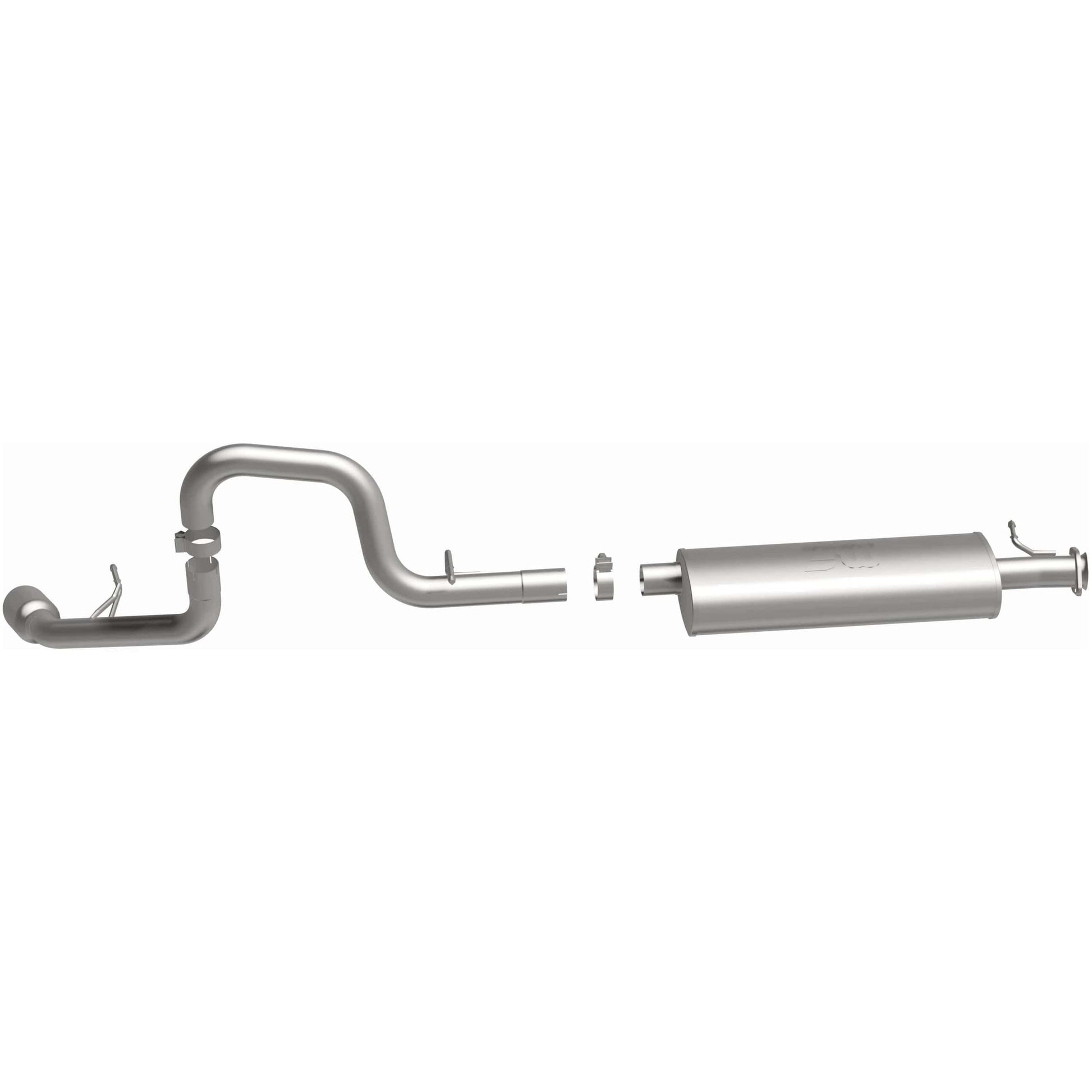 The MagnaFlow Street Series Cat-Back Performance Exhaust System 15718 brings out the personality of your Truck with our signature resonant, powerful engine tone and dyno-proven performance. Thanks to its fast-flowing, mandrel bent 2.5in. main piping and 1 Straight-Through mufflers ending in a Single Driver Side Rear exit with 4in. Polished Welded-On Double Wall Angle Cut Rolled Edge tips, this Truck exhaust kit has the performance chops to match its sporty sound and appearance. Upgrade your ride to the next level with an exhaust that has the pipes to put other Truck's to shame. With this system your vehicle will be producing Moderate exterior and Mild interior sound levels while leaving other cars and trucks feeling envious at every stoplight. Exhaust kit 15718 features a cat-back layout that replaces your ride's stock exhaust components from near the catalytic converter on back. Extensive 3D scanning during development has resulted in a direct-fit design that you can easily install yourself. 15718 is produced using CNC precision robotic manufacturing techniques and is backed by MagnaFlow's 1-year limited finish warranty and limited lifetime construction warranty.