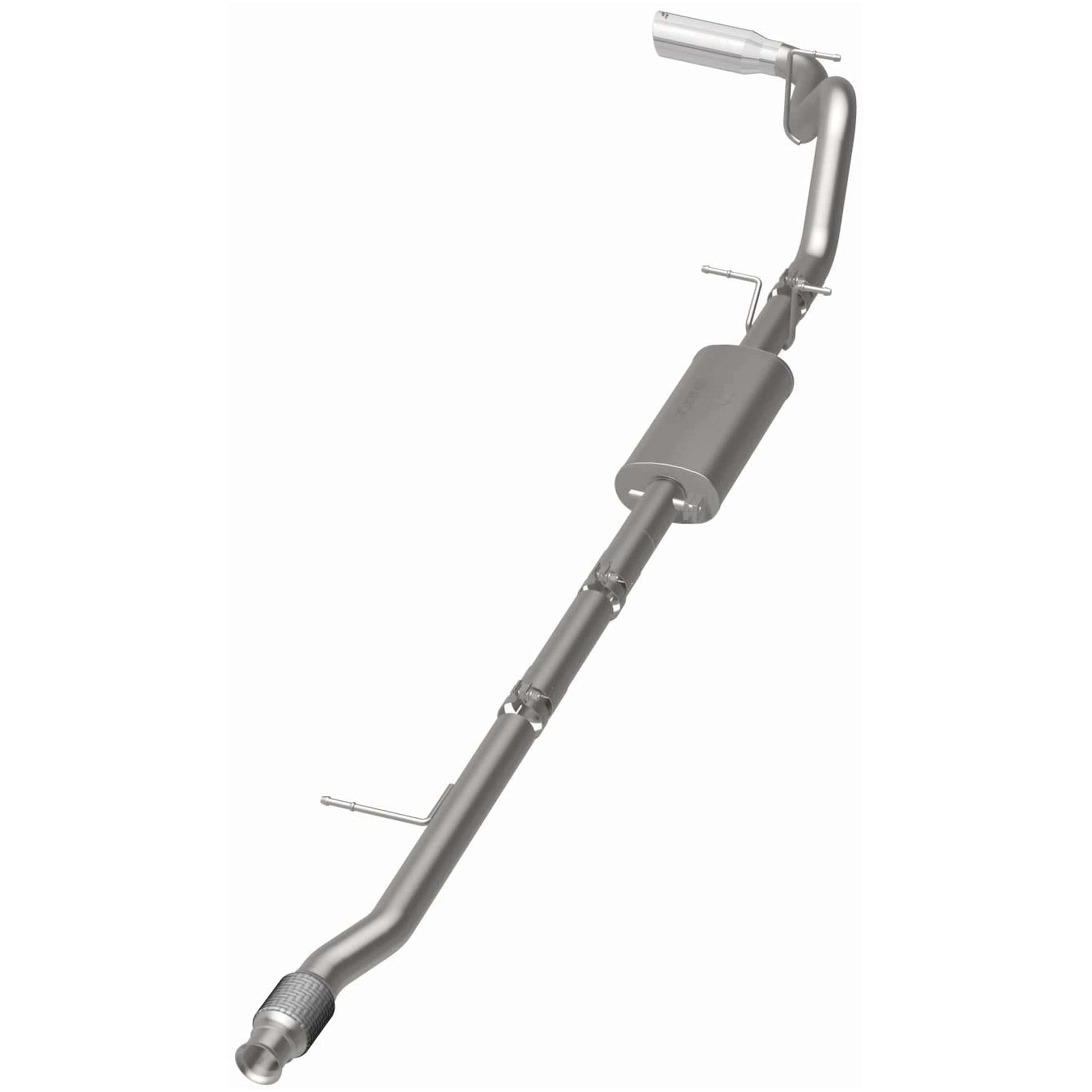The MagnaFlow Street Series Cat-Back Performance Exhaust System 19469 brings out the personality of your Truck with our signature resonant, powerful engine tone and dyno-proven performance. Thanks to its fast-flowing, mandrel bent 3in. main piping and 1 Straight-Through mufflers ending in a Single Passenger Side Rear exit with 4in. Polished Welded-On Double Wall Angle Cut Rolled Edge tips, this Truck exhaust kit has the performance chops to match its sporty sound and appearance. Upgrade your ride to the next level with an exhaust that has the pipes to put other Truck's to shame. With this system your vehicle will be producing Moderate exterior and Mild interior sound levels while leaving other cars and trucks feeling envious at every stoplight. Exhaust kit 19469 features a cat-back layout that replaces your ride's stock exhaust components from near the catalytic converter on back. Extensive 3D scanning during development has resulted in a direct-fit design that you can easily install yourself. 19469 is produced using CNC precision robotic manufacturing techniques and is backed by MagnaFlow's 1-year limited finish warranty and limited lifetime construction warranty.
