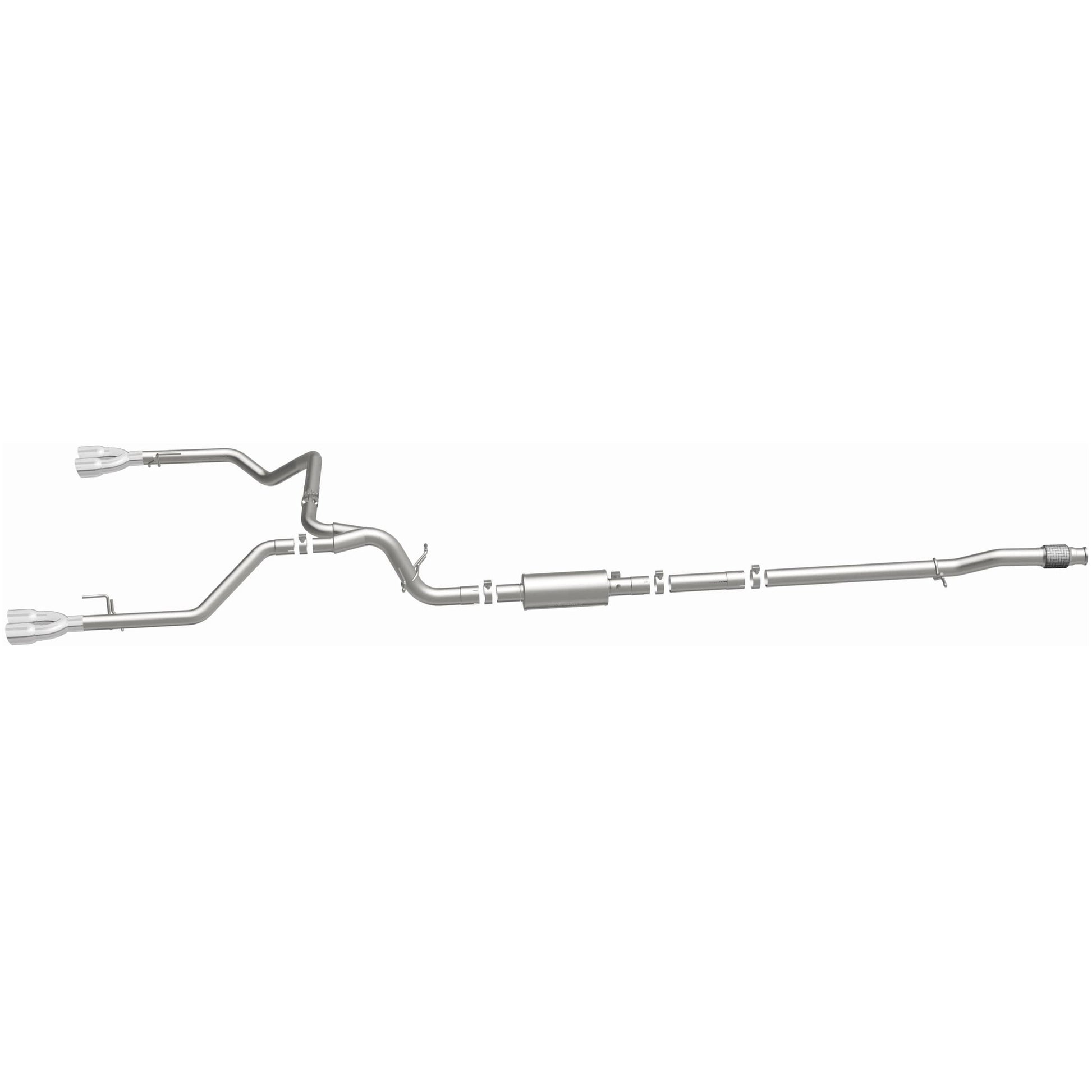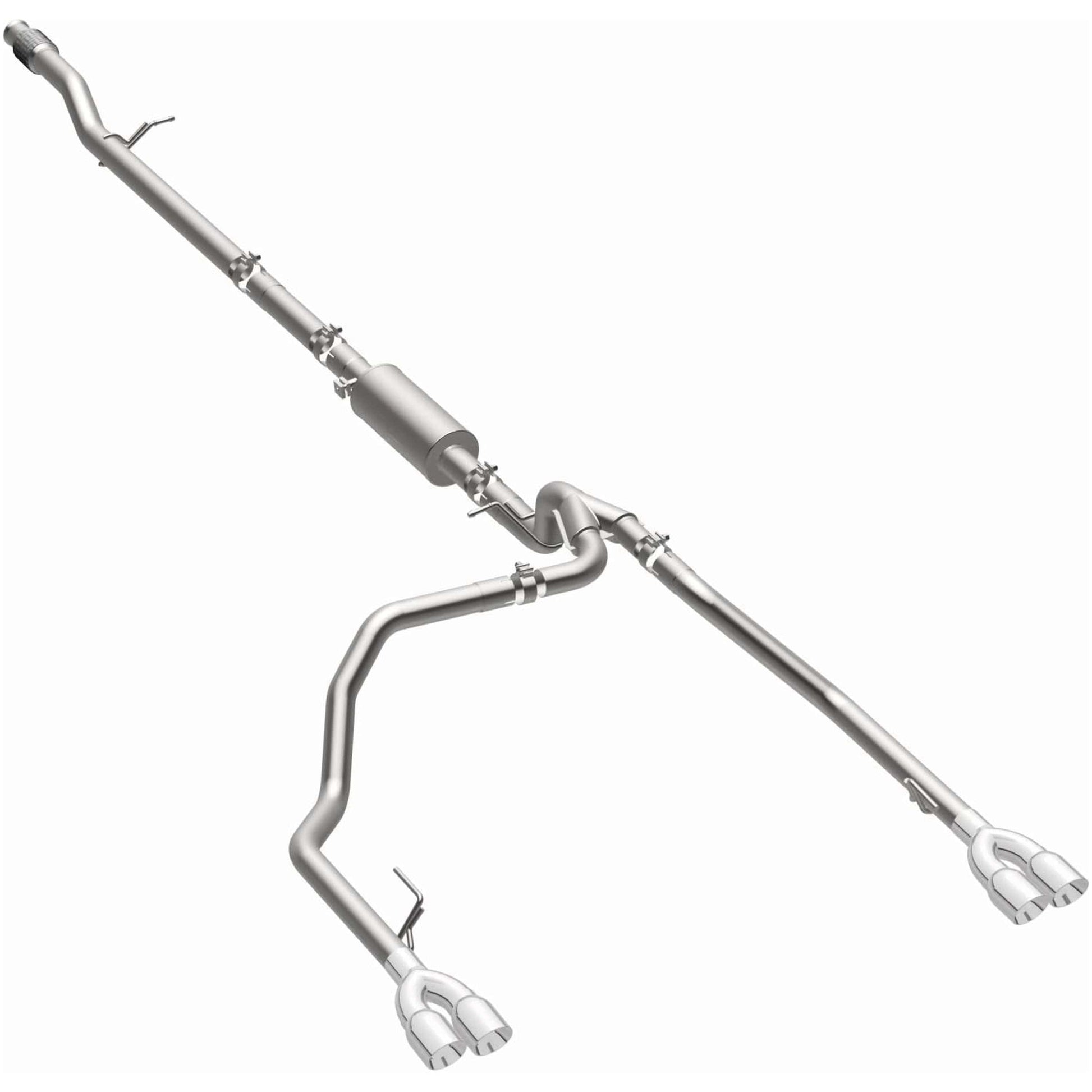 The MagnaFlow Street Series Cat-Back Performance Exhaust System 19477 brings out the personality of your Truck with our signature resonant, powerful engine tone and dyno-proven performance. Thanks to its fast-flowing, mandrel bent 3in. main piping and 1 Straight-Through mufflers ending in a Quad Split Rear exit with 3.5in. Polished Welded-On Double Wall Angle Cut Folded Edge tips, this Truck exhaust kit has the performance chops to match its sporty sound and appearance. Upgrade your ride to the next level with an exhaust that has the pipes to put other Truck's to shame. With this system your vehicle will be producing Aggressive exterior and Moderate interior sound levels while leaving other cars and trucks feeling envious at every stoplight. Exhaust kit 19477 features a cat-back layout that replaces your ride's stock exhaust components from near the catalytic converter on back. Extensive 3D scanning during development has resulted in a direct-fit design that you can easily install yourself. 19477 is produced using CNC precision robotic manufacturing techniques and is backed by MagnaFlow's 1-year limited finish warranty and limited lifetime construction warranty.