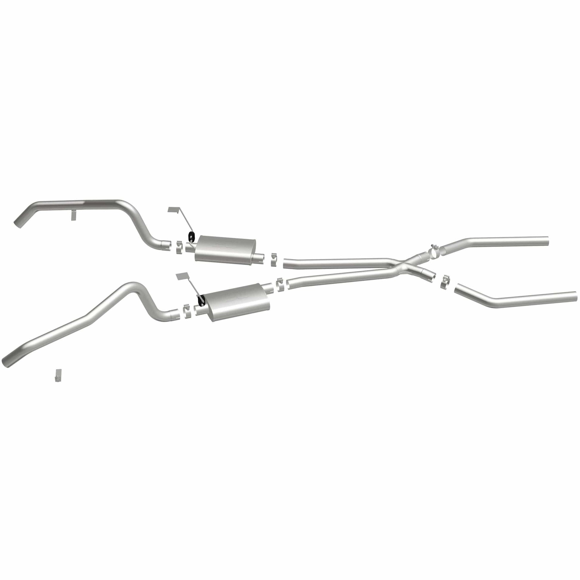 The MagnaFlow Street Series Crossmember-Back Performance Exhaust System 15896 brings enhanced engine sound and dyno-proven performance to your muscle car with a healthy helping of our deep, resonant signature exhaust note at Moderate exterior and Mild interior sound levels. Thanks to its durable, corrosion resistant stainless steel design, this exhaust system will handle whatever tarmac you decide to leave your mark on. This performance exhaust kit features a crossmember-back layout designed to replace your exhaust system from the crossmember on back. With its fast-flowing, mandrel bent 2.5in. main piping and 2 Straight-Through mufflers ending in a Dual Split Rear exit that you can enhance with tips of your choosing, your muscle car will be sounding as awesome as it looks. Extensive 3D scanning during development has resulted in a direct-fit design that you can easily install yourself. 15896 is produced using CNC precision robotic manufacturing techniques and is backed by MagnaFlow's limited lifetime construction warranty.