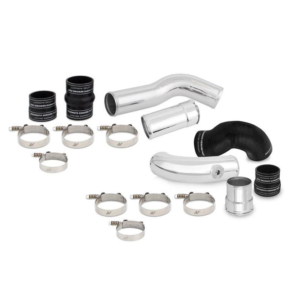 The pipes are constructed of mandrel bent aluminum with a polished finish and eliminate restrictive bends in the factory pipe, allowing for improvements in airflow, power, and EGTs. The engineers at Mishimoto designed CNC-machined quick-disconnect flanges and IAT sensor housing to allow for an easy install in less than two hours. This intercooler pipe and boot kit is direct fit, retaining all factory emissions components and does not require the use of a tuner.