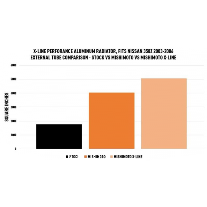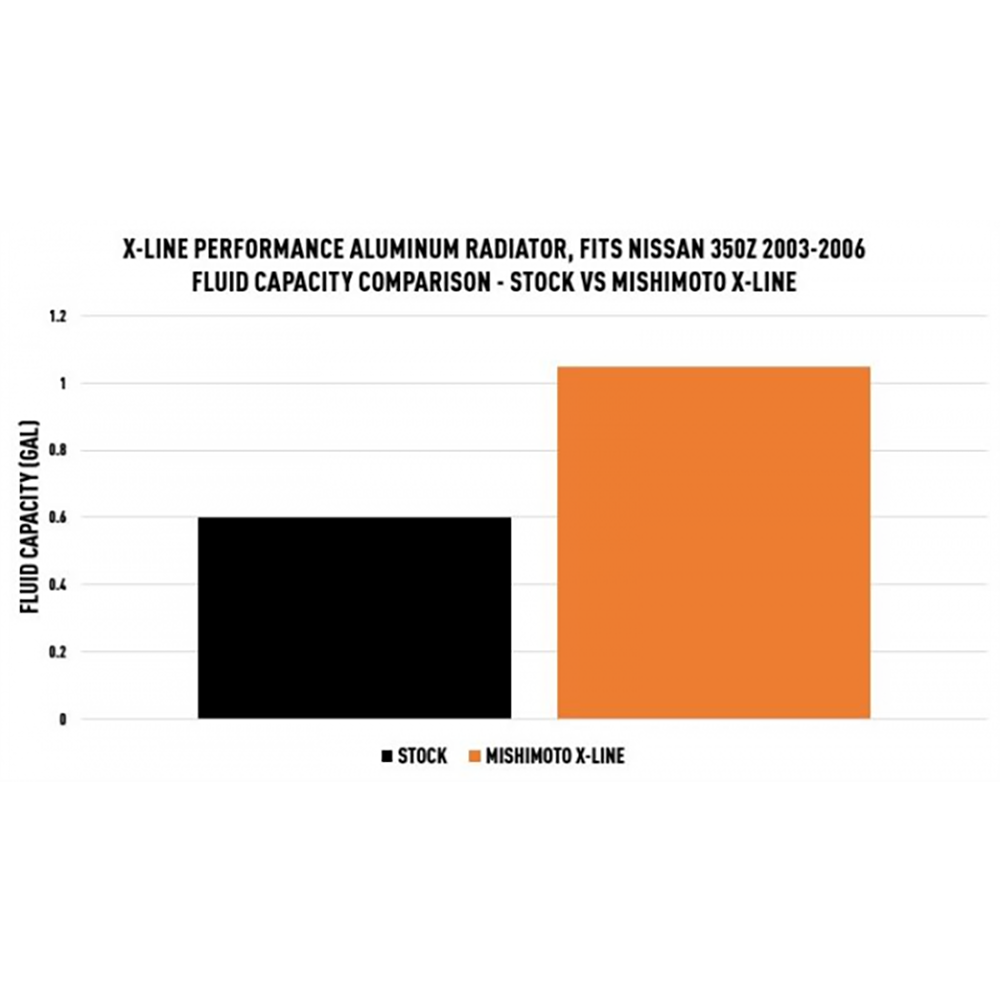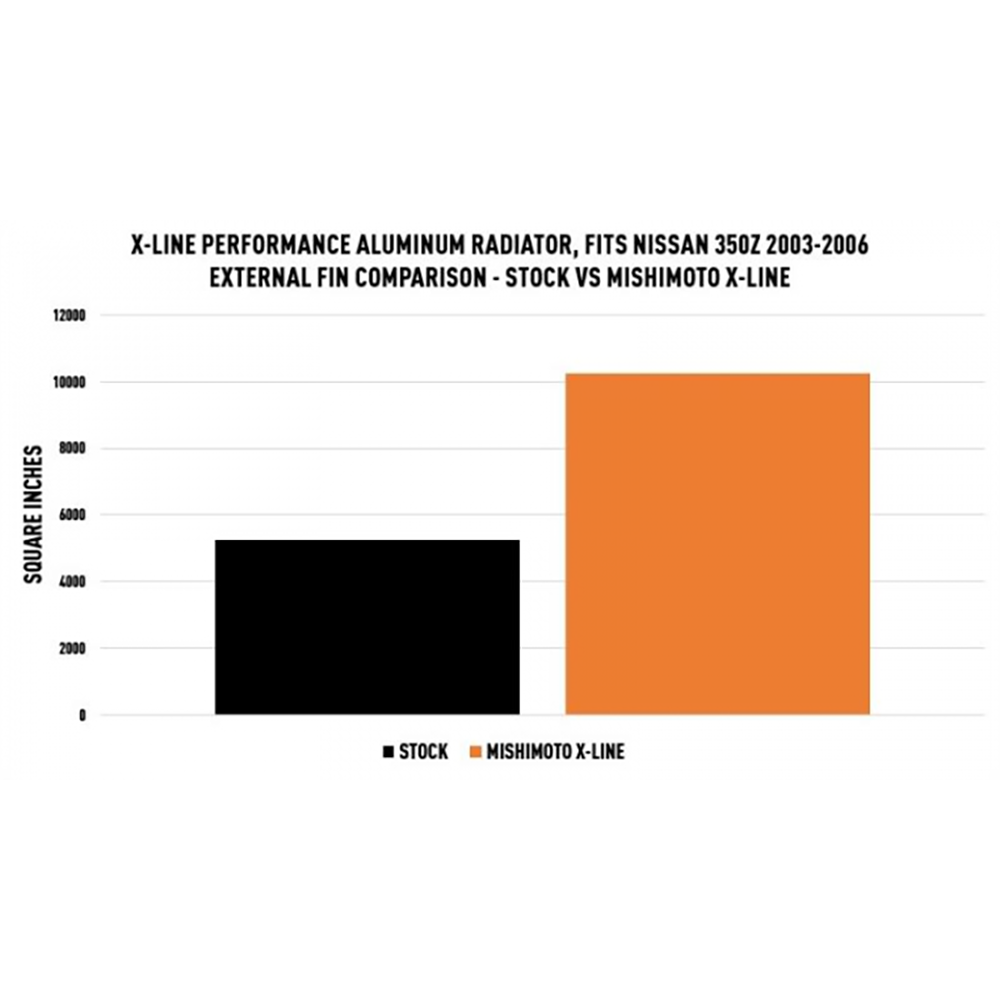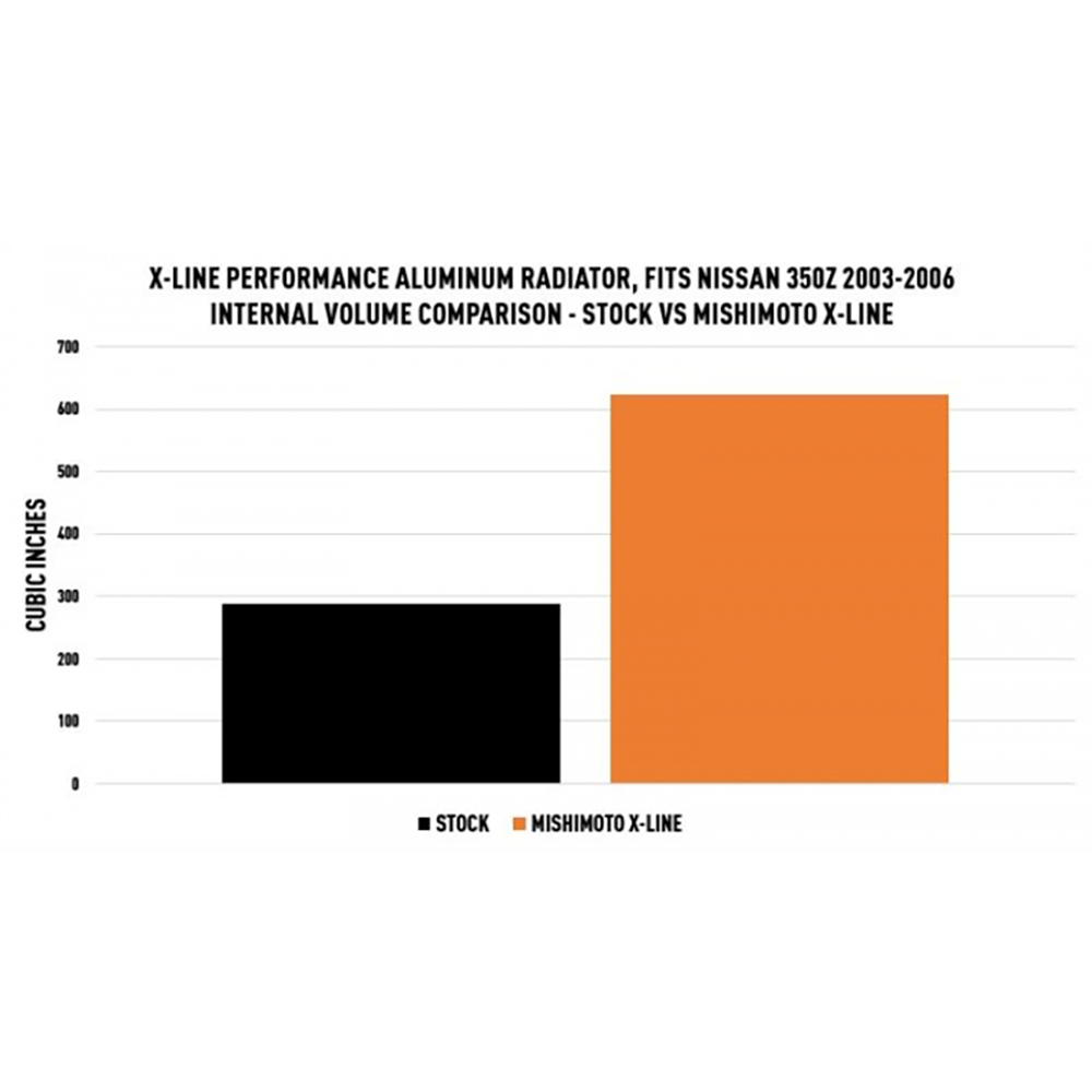 Our engineering team first focused on improving the radiator's core, specifically the tube and fin specifications. This X-line 350Z radiator's core features more densely packed fins, resulting in a massive 92% increase in external fin area over the stock 350Z radiator. Greater fin surface area means improved heat transfer, which translates to cooler engine temperatures. Our 36mm core also dwarfs the 16mm stock unit, providing a 117% increase in overall core volume. Our X-line 350Z radiator features precision TIG-welded aluminum end tanks to withstand anything the road or track can throw at it. This radiator also includes a Mishimoto magnetic drain plug to capture any metallic contaminants within your engine coolant and further protect your cooling system. As with all our Nissan 350Z products, this Mishimoto X-line Performance Aluminum Radiator for the 2003-2006 Nissan 350Z includes our signature Mishimoto Lifetime Warranty for a lifetime of cooling performance.