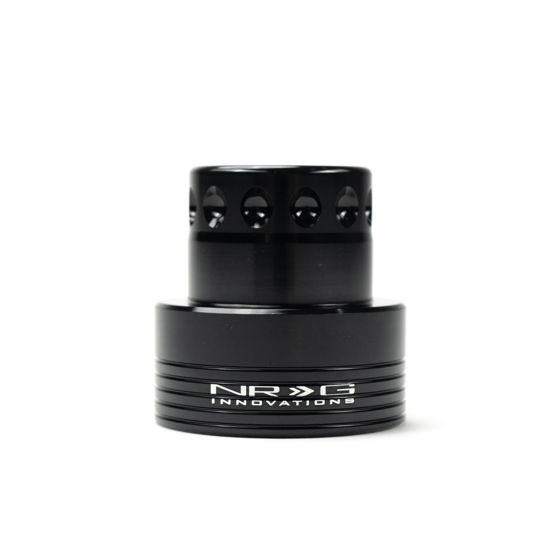 If you're looking for a stylish Quick Release Steering Wheel set up, but also have function and weight savings on your mind? Well, you have just found the shortest, easiest-to-use, racing hub adapter in the market. While they perform just as well as our normal Short Hubs, the race hub is more compact. In most cases, we have removed over an inch to the height of the hub by removing the horn attachments, along with the steering wheel mating surface, and opting for a Quick Release style attachment. This means that you MUST have an NRG Quick Release attached to your steering wheel in order to mount it on the Race Hub. (There is no 6 hole pattern on the Race Hub)