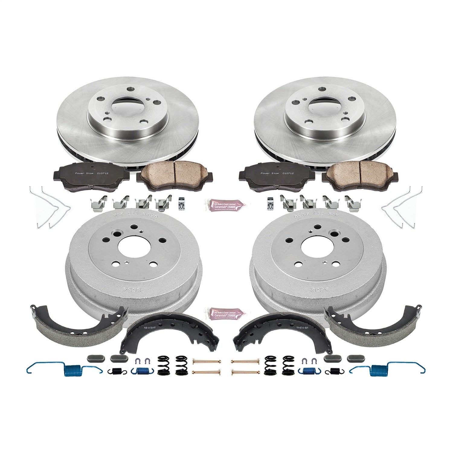 Power Stop - Front and Rear OE Stock Replacement Low-Dust Ceramic Brake Pad, Rotors with Drum + Shoe Kit