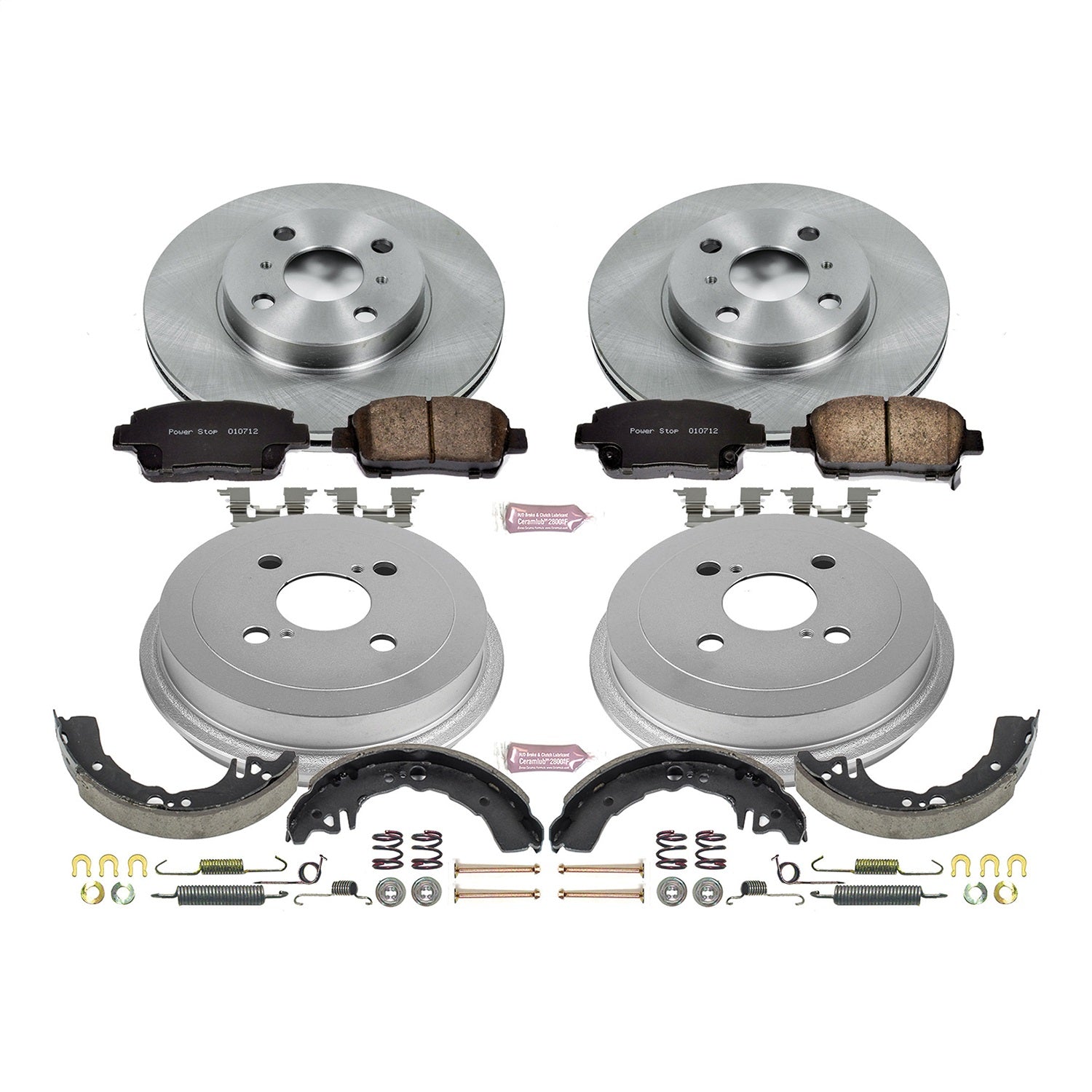 Power Stop - Front and Rear OE Stock Replacement Low-Dust Ceramic Brake Pad, Rotors with Drum + Shoe Kit