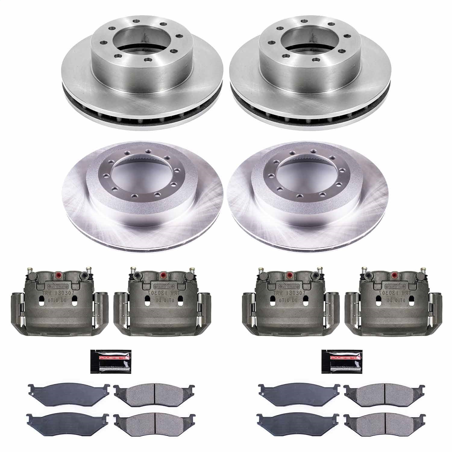 PowerStop 02-04 Ford F-450 Super Duty Front & Rear Autospecialty Kit w/Cals (KCOE6408)