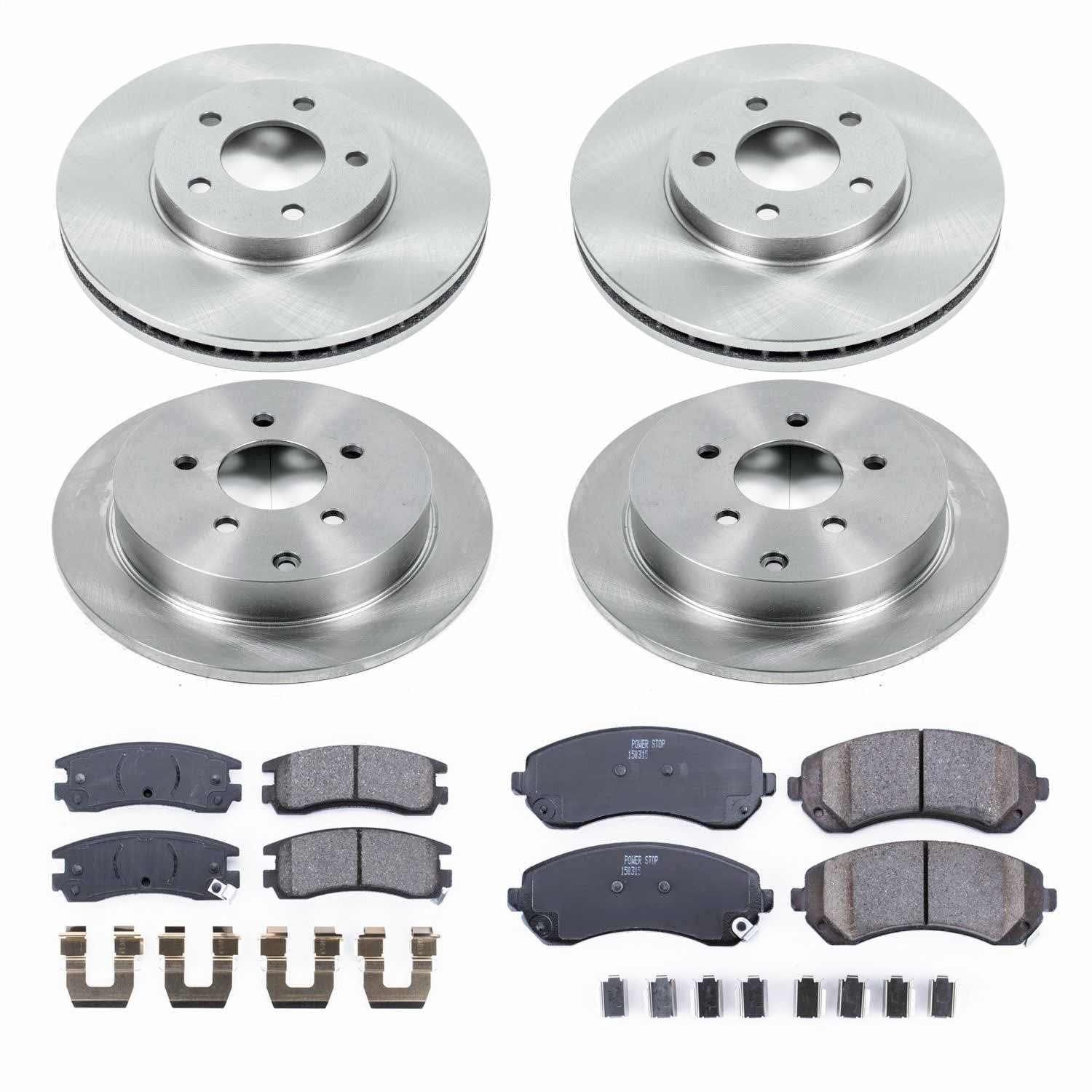Power Stop - Front and Rear OE Stock Replacement Low-Dust Ceramic Brake Pad and Rotor Kit