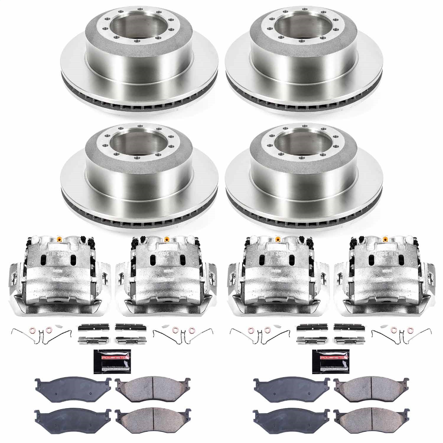 PowerStop - Front and Rear OE Stock Replacement Low-Dust Ceramic Brake Pad, Rotor and Caliper Kit