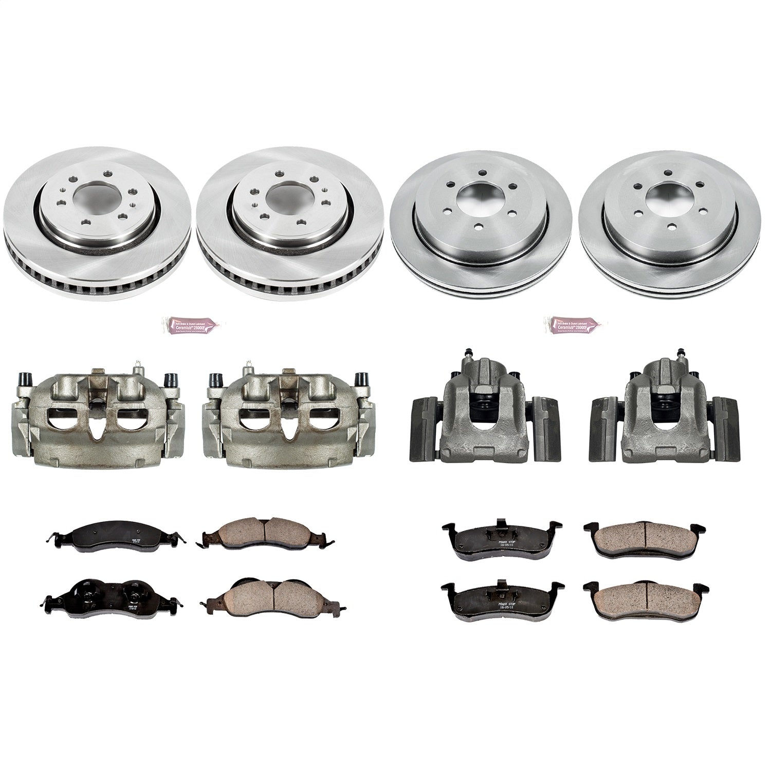 PowerStop - Front and Rear OE Stock Replacement Low-Dust Ceramic Brake Pad, Rotor and Caliper Kit