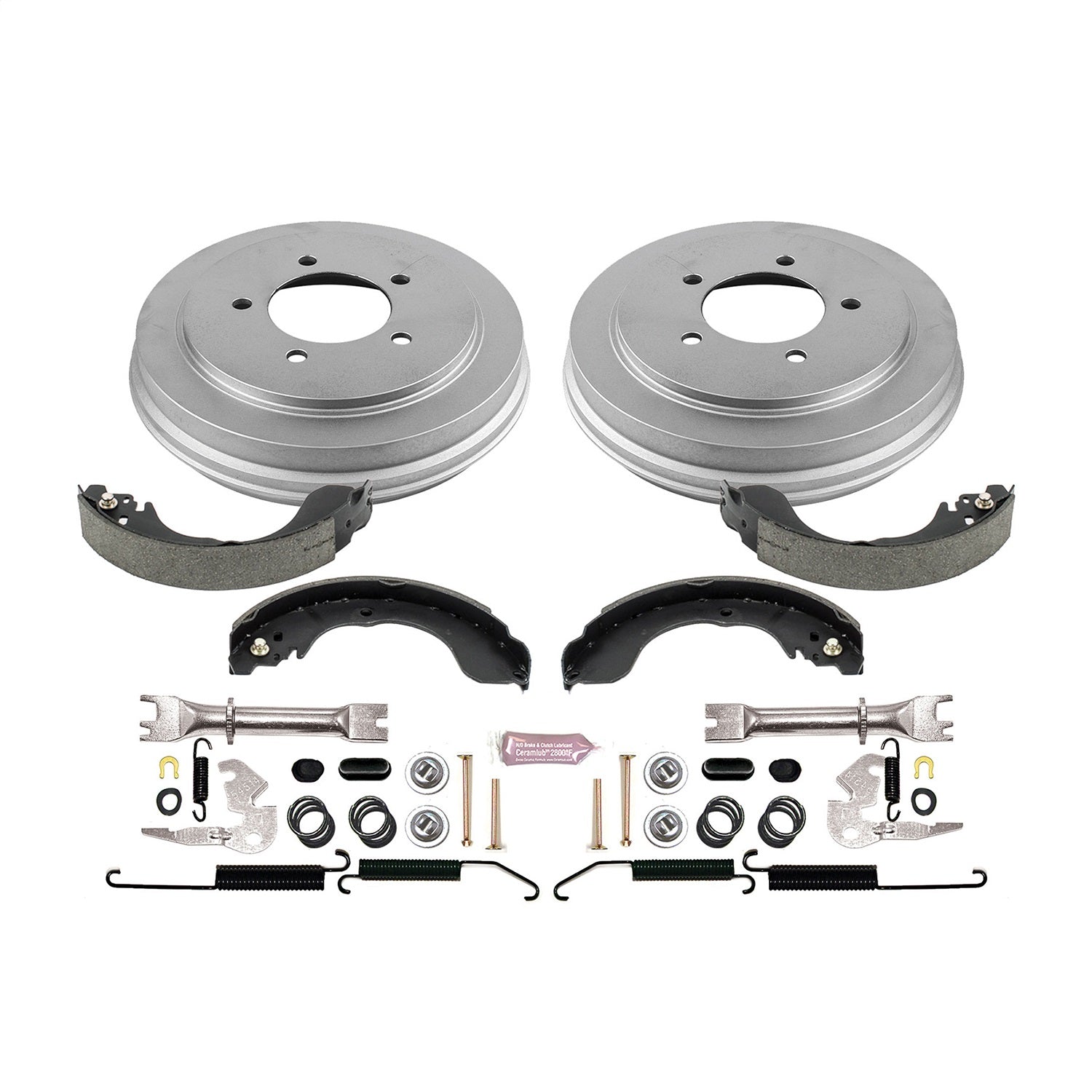 DIRECT REPLACEMENT KIT: COATED DRUMS, SHOES W/ HOLD DOWN AND ADJUSTER KIT
