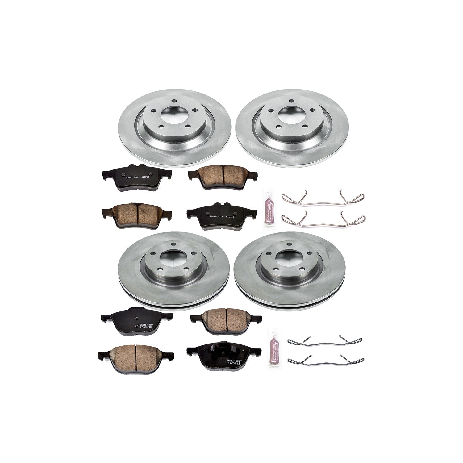 Power Stop - Front and Rear OE Stock Replacement Low-Dust Ceramic Brake Pad and Rotor Kit