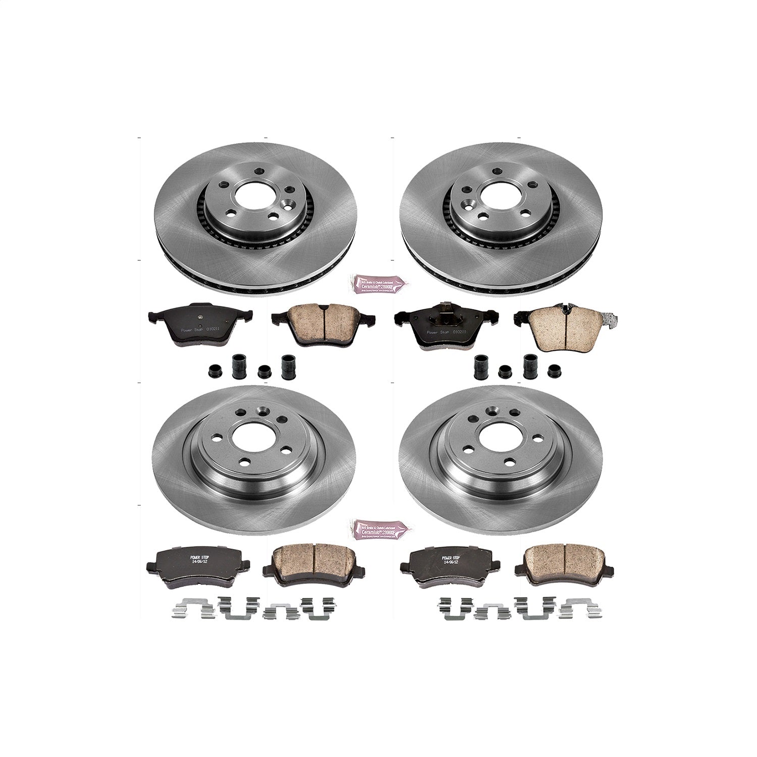Power Stop - Front and Rear OE Stock Replacement Low-Dust Ceramic Brake Pad and Rotor Kit
