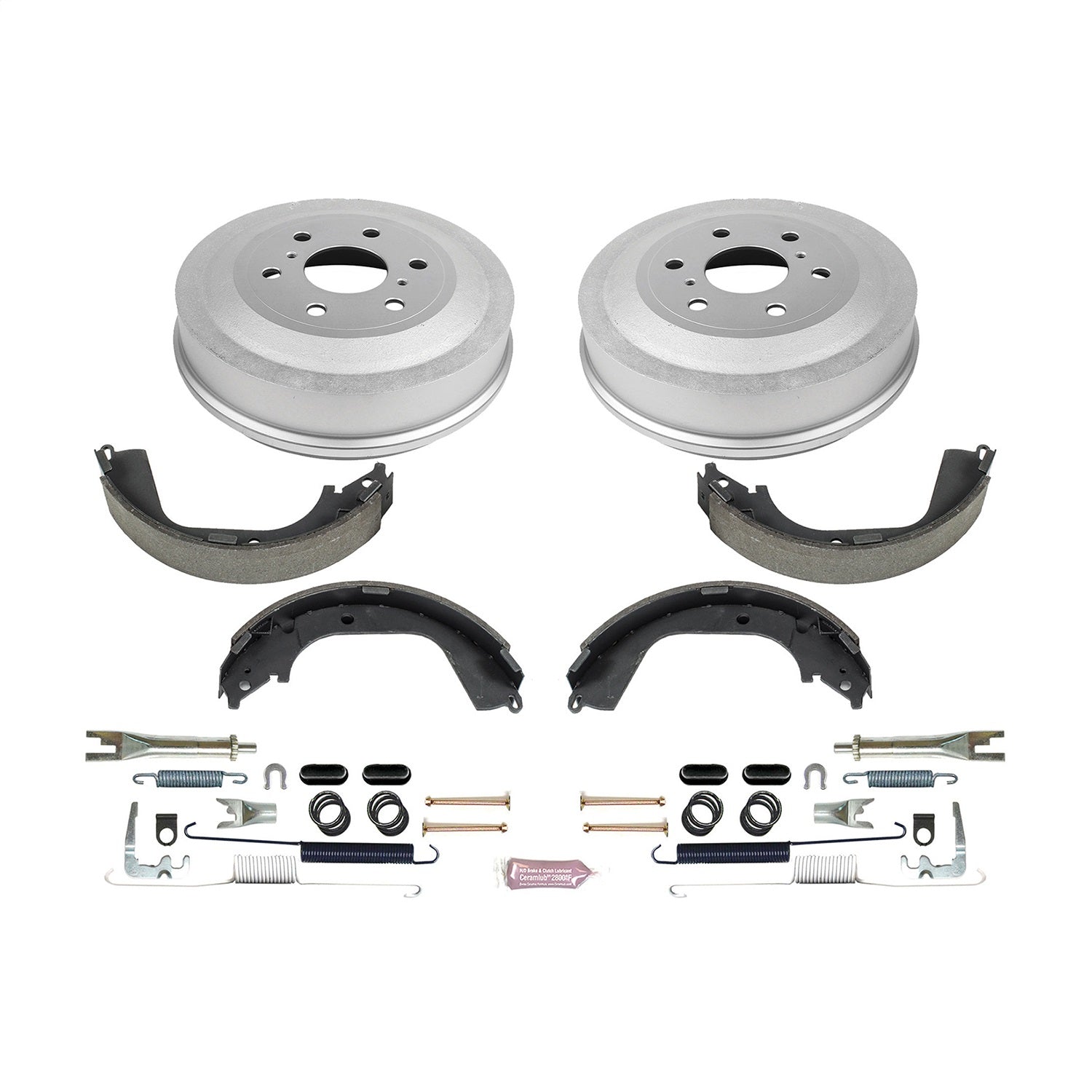 DIRECT REPLACEMENT KIT: COATED DRUMS, SHOES W/ HOLD DOWN AND ADJUSTER KIT