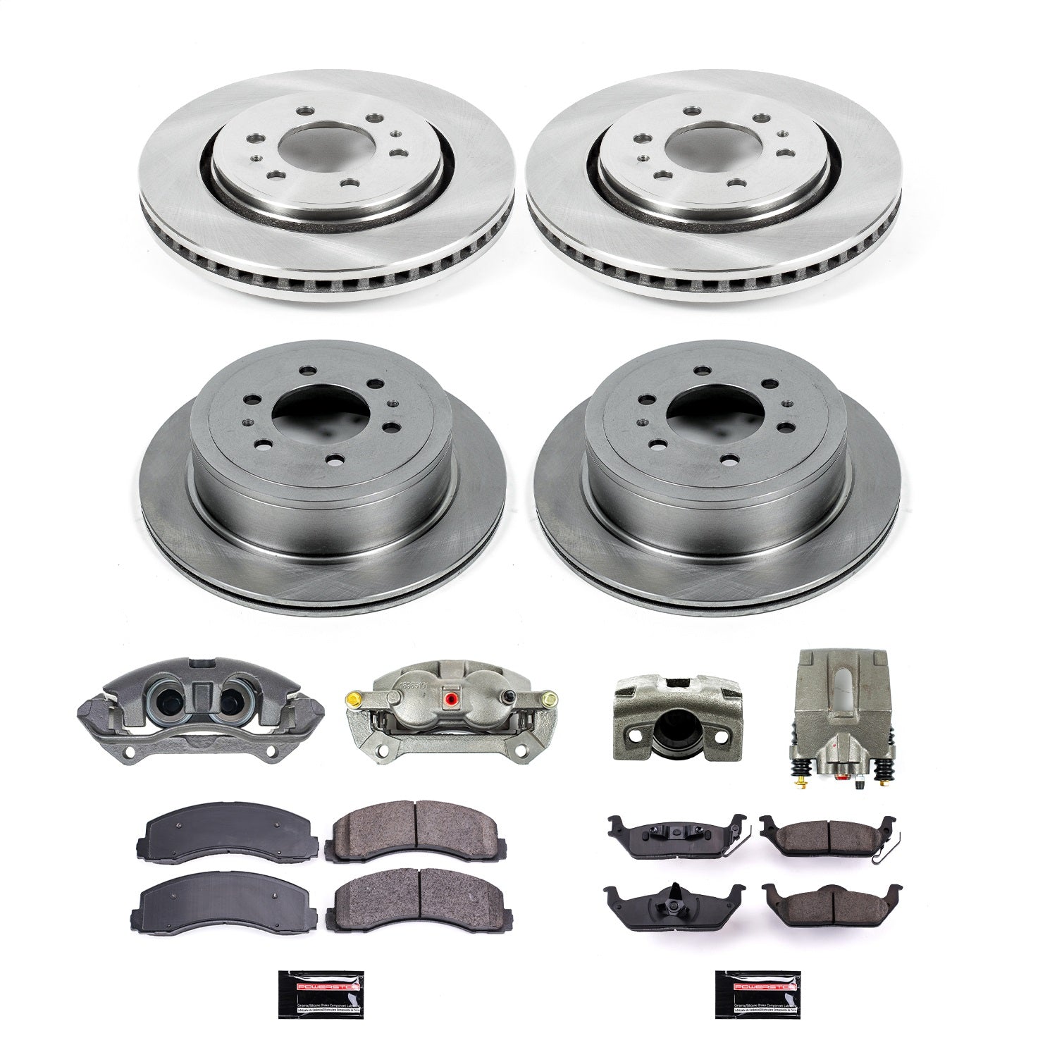 PowerStop - Front and Rear OE Stock Replacement Low-Dust Ceramic Brake Pad, Rotor and Caliper Kit