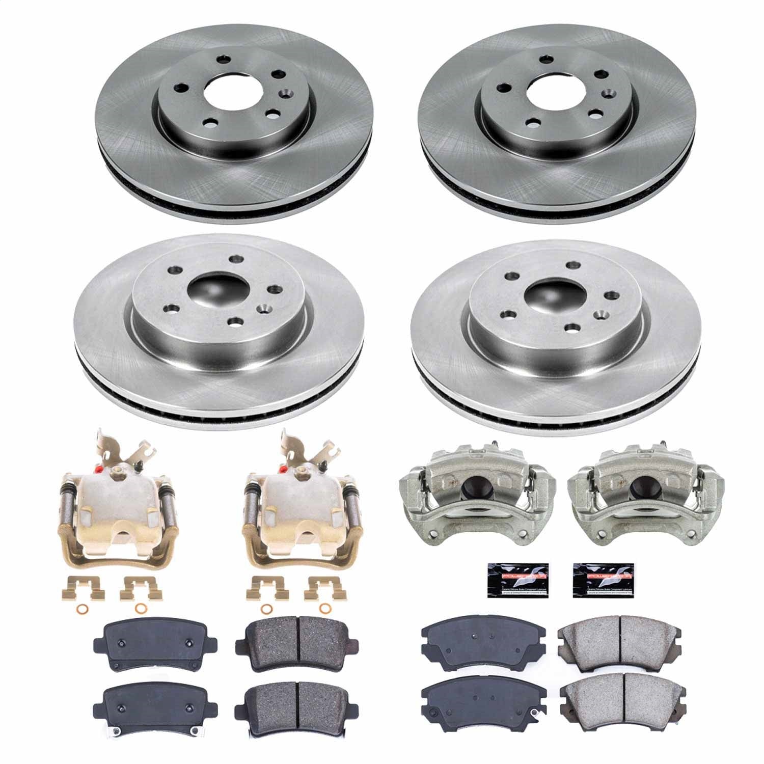 PowerStop - Front and Rear OE Stock Replacement Low-Dust Ceramic Brake Pad, Rotor and Caliper Kit