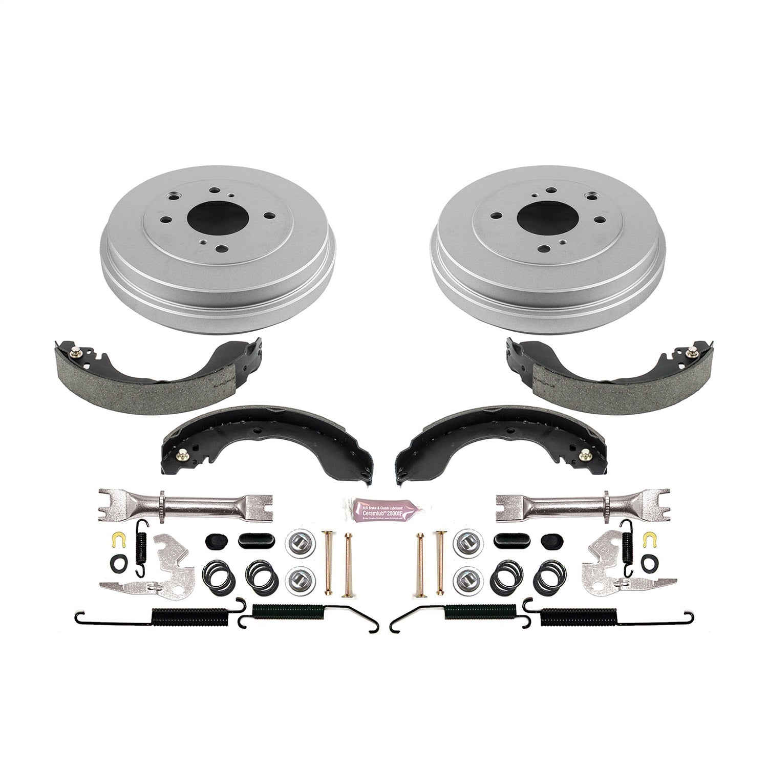 DIRECT REPLACEMENT KIT: COATED DRUMS, SHOES W/ HOLD DOWN AND ADJUSTER KIT