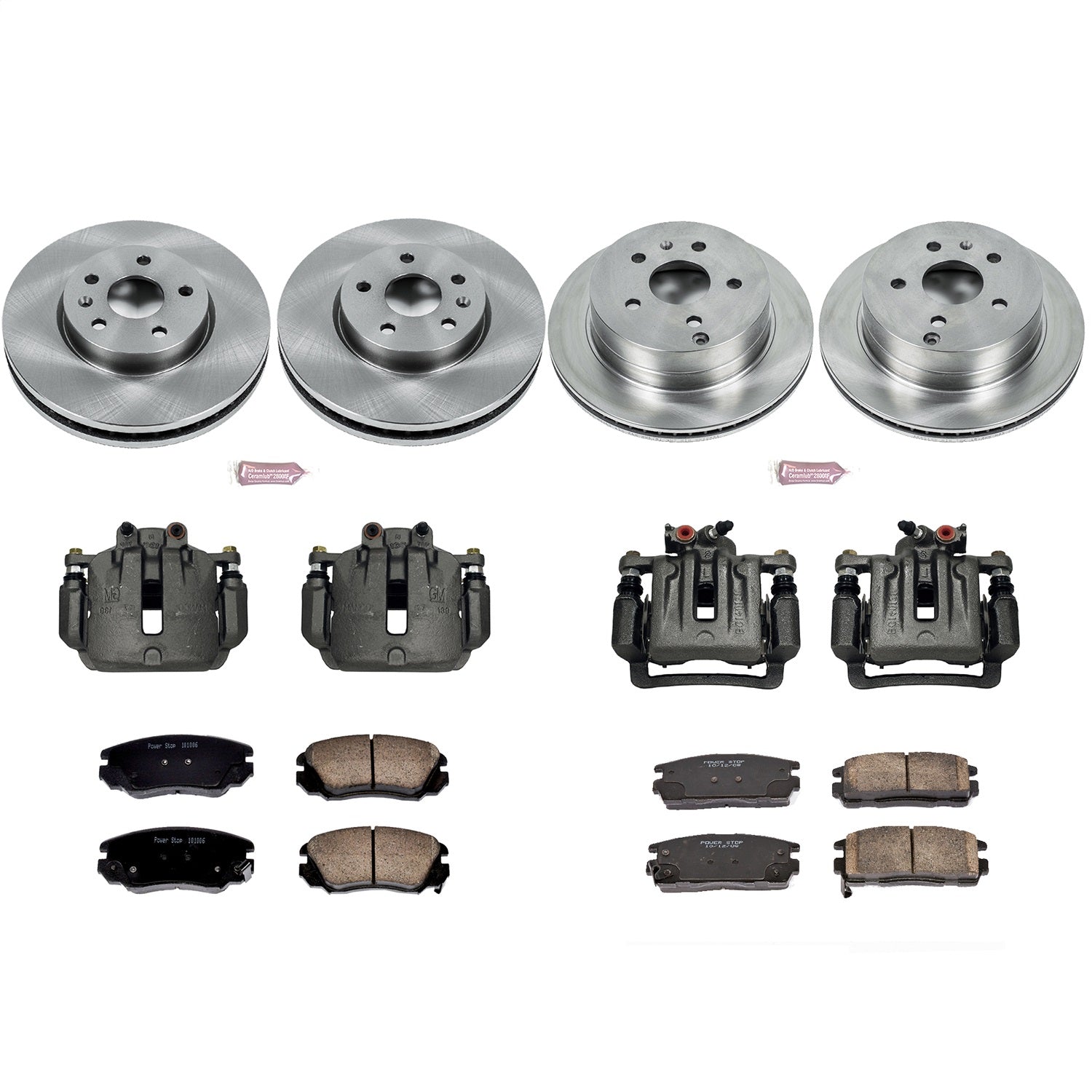PowerStop - Front and Rear OE Stock Replacement Low-Dust Ceramic Brake Pad, Rotor and Caliper Kit