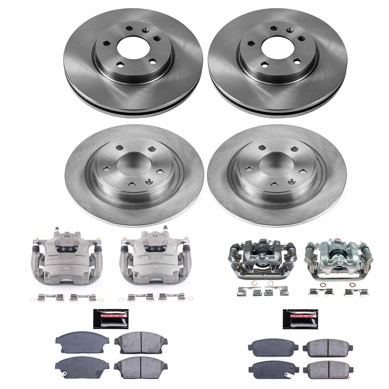 Power Stop - Front and Rear OE Stock Replacement Low-Dust Ceramic Brake Pad, Rotor and Caliper Kit