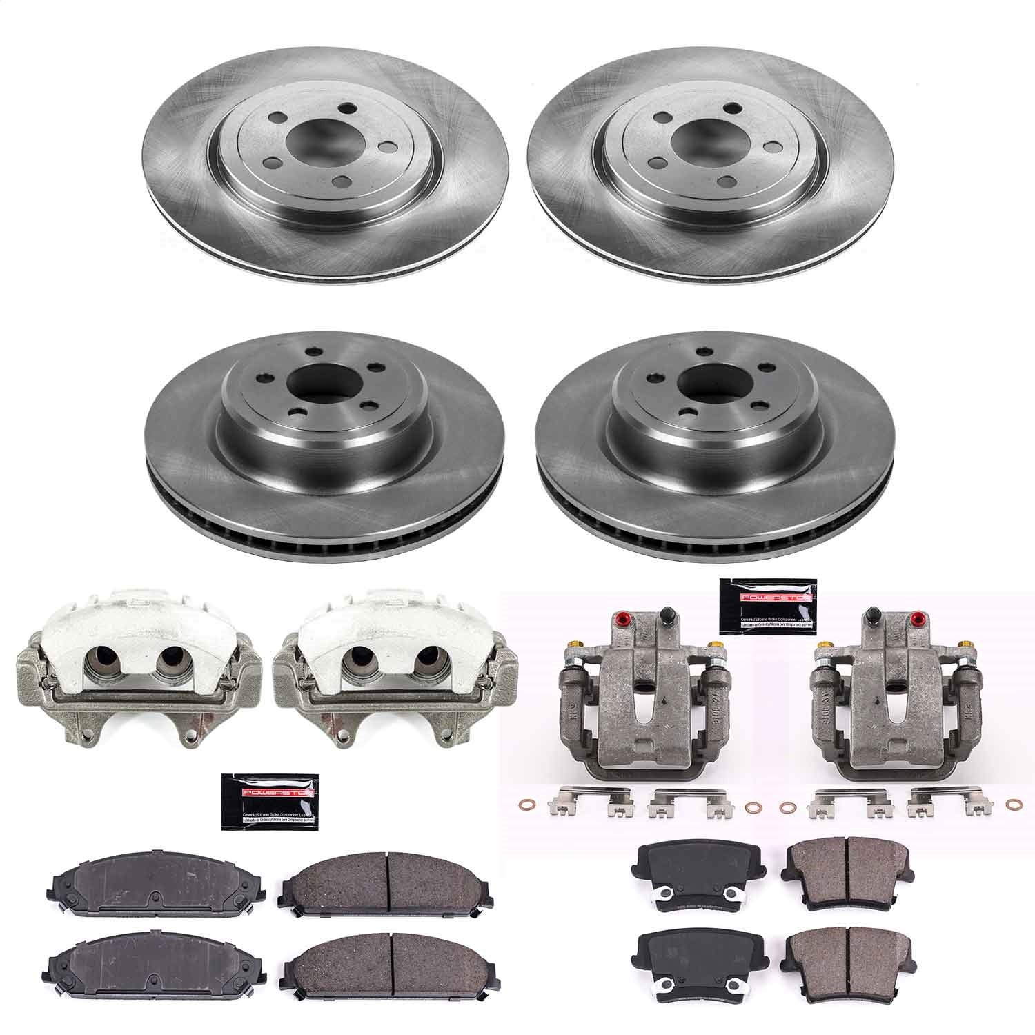 PowerStop - Front and Rear OE Stock Replacement Low-Dust Ceramic Brake Pad, Rotor and Caliper Kit