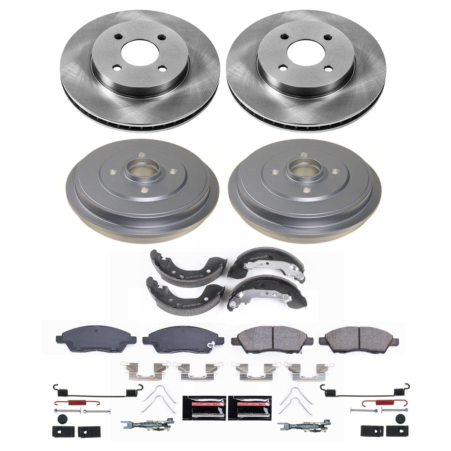 OE Stock Replacement Low-Dust Ceramic Brake Pad, Rotors, Drum + Shoe Kit