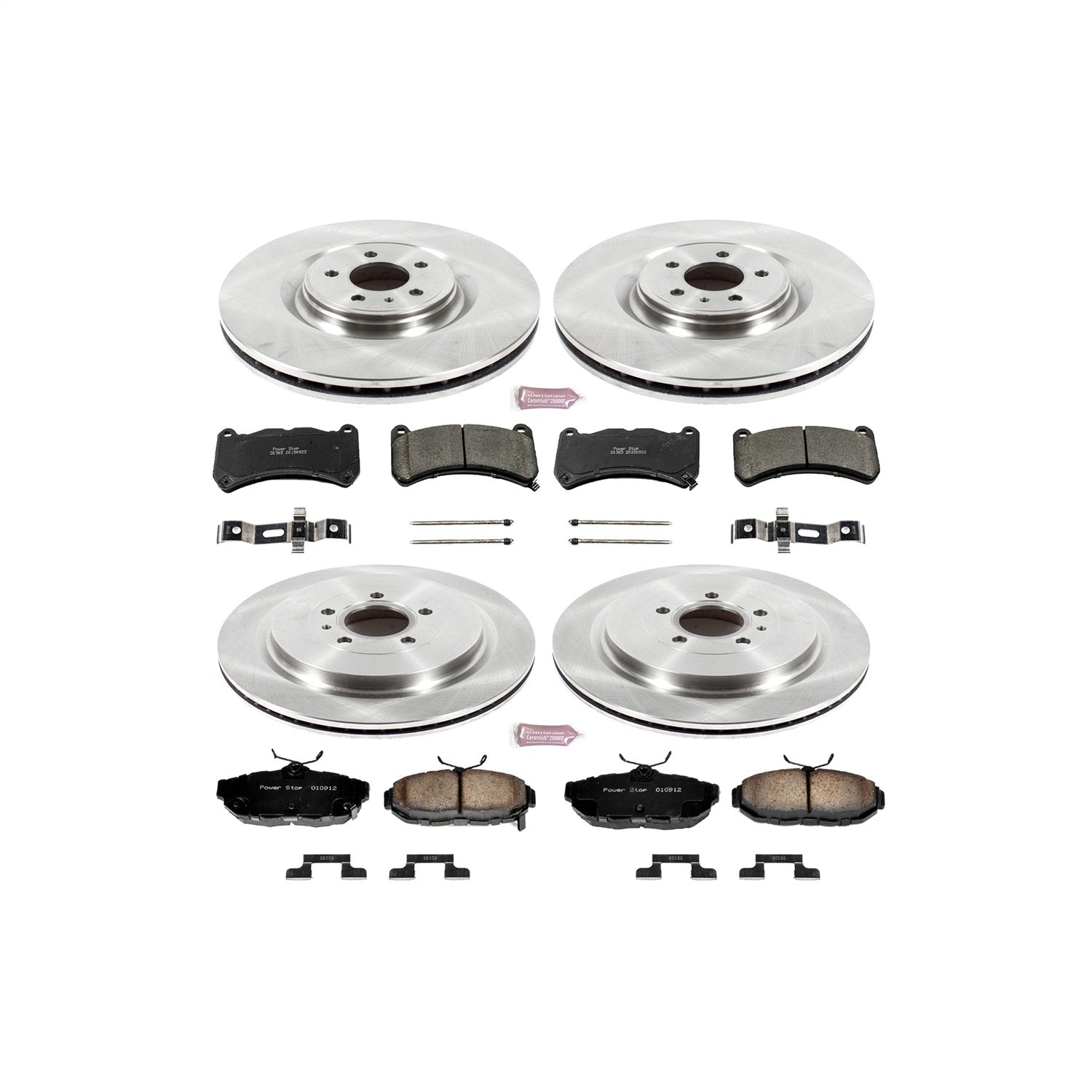PowerStop - Front and Rear OE Stock Replacement Low-Dust Ceramic Brake Pad and Rotor Kit