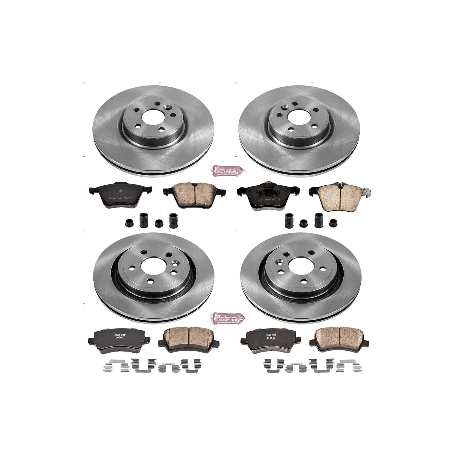 Power Stop - Front and Rear OE Stock Replacement Low-Dust Ceramic Brake Pad and Rotor Kit