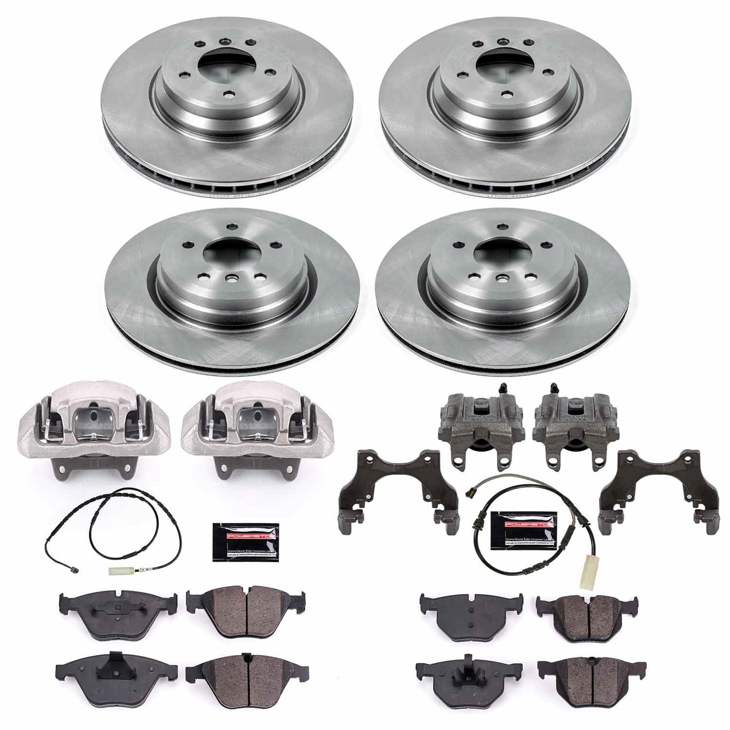 PowerStop - Front and Rear OE Stock Replacement Low-Dust Ceramic Brake Pad, Rotor and Caliper Kit