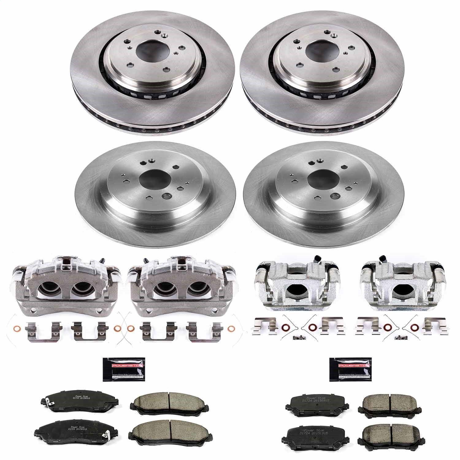 PowerStop - Front and Rear OE Stock Replacement Low-Dust Ceramic Brake Pad, Rotor and Caliper Kit