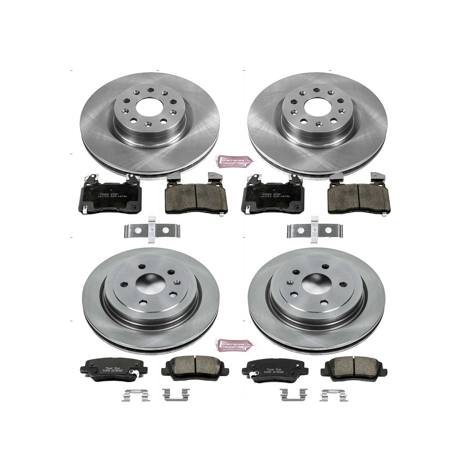 Power Stop - Front and Rear OE Stock Replacement Low-Dust Ceramic Brake Pad and Rotor Kit