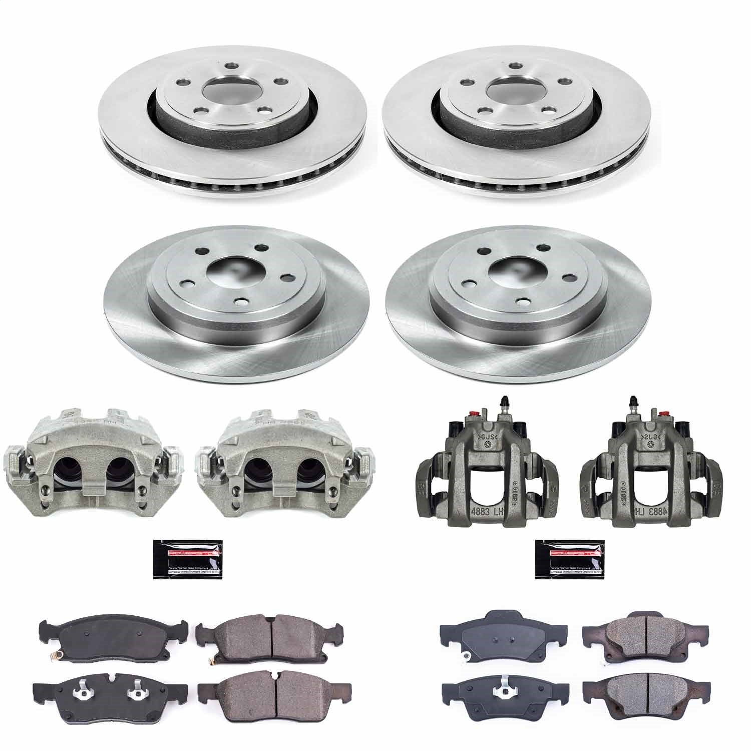 PowerStop - Front and Rear OE Stock Replacement Low-Dust Ceramic Brake Pad, Rotor and Caliper Kit
