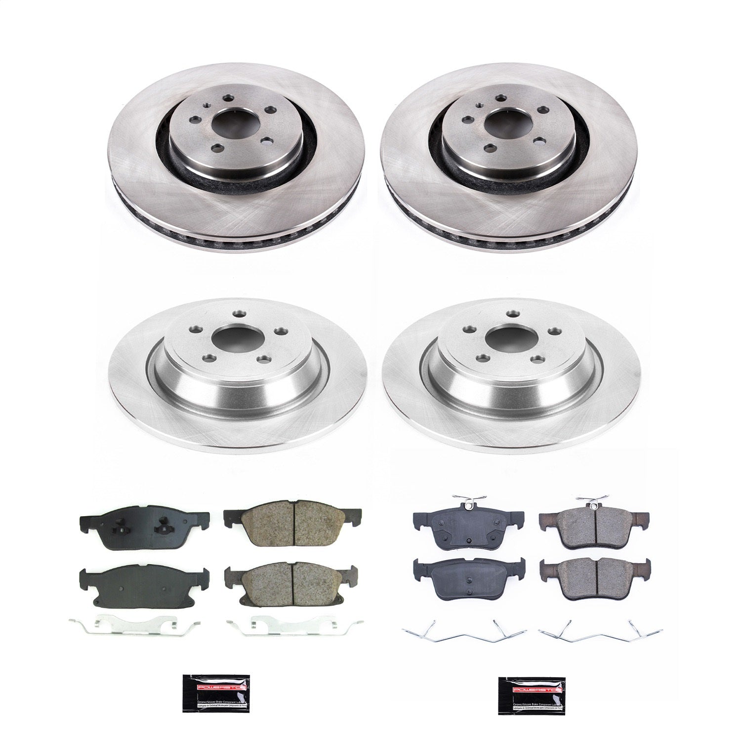 PowerStop - Front and Rear OE Stock Replacement Low-Dust Ceramic Brake Pad and Rotor Kit