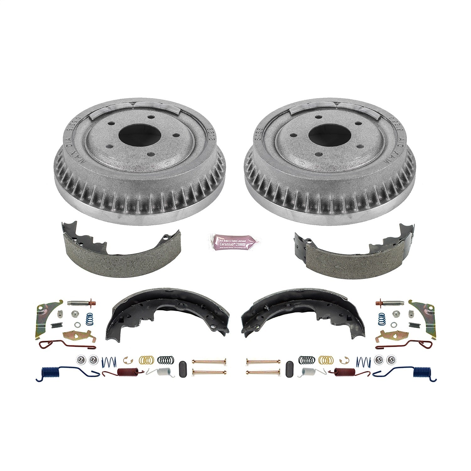 DIRECT REPLACEMENT KIT: COATED DRUMS, SHOES W/ HOLD DOWN AND ADJUSTER KIT
