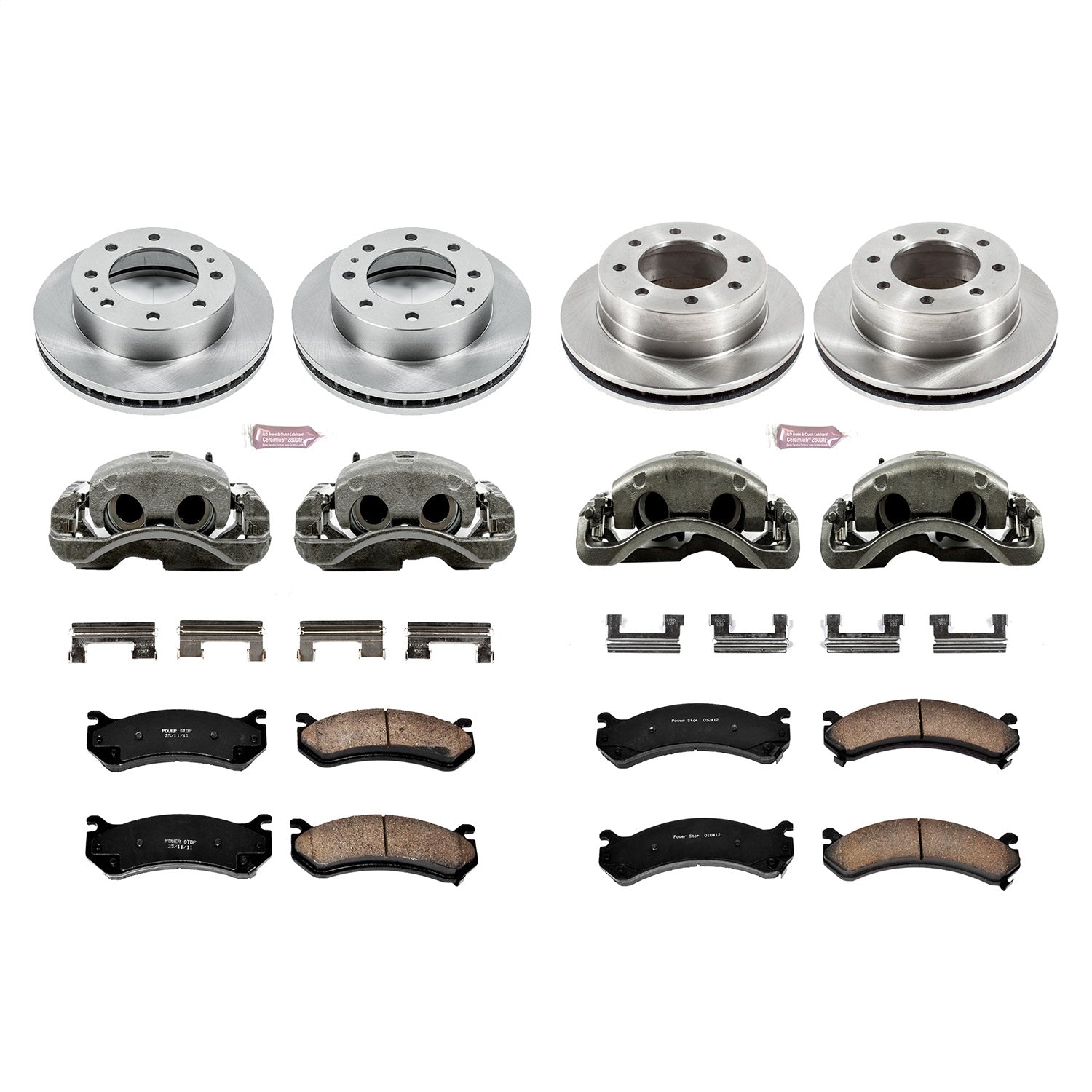 PowerStop - Front and Rear OE Stock Replacement Low-Dust Ceramic Brake Pad, Rotor and Caliper Kit