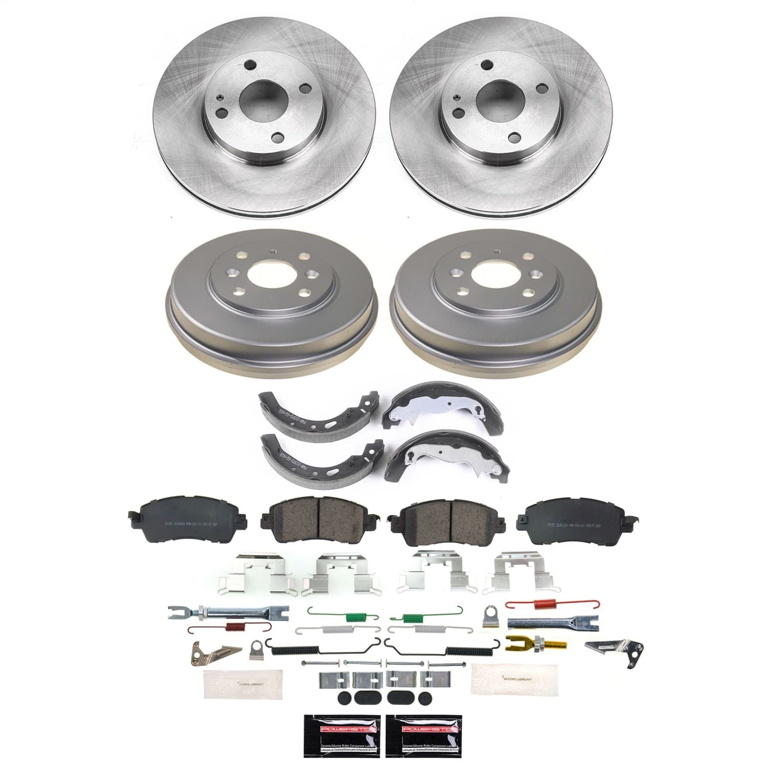 OE Stock Replacement Low-Dust Ceramic Brake Pad, Rotors, Drum + Shoe Kit