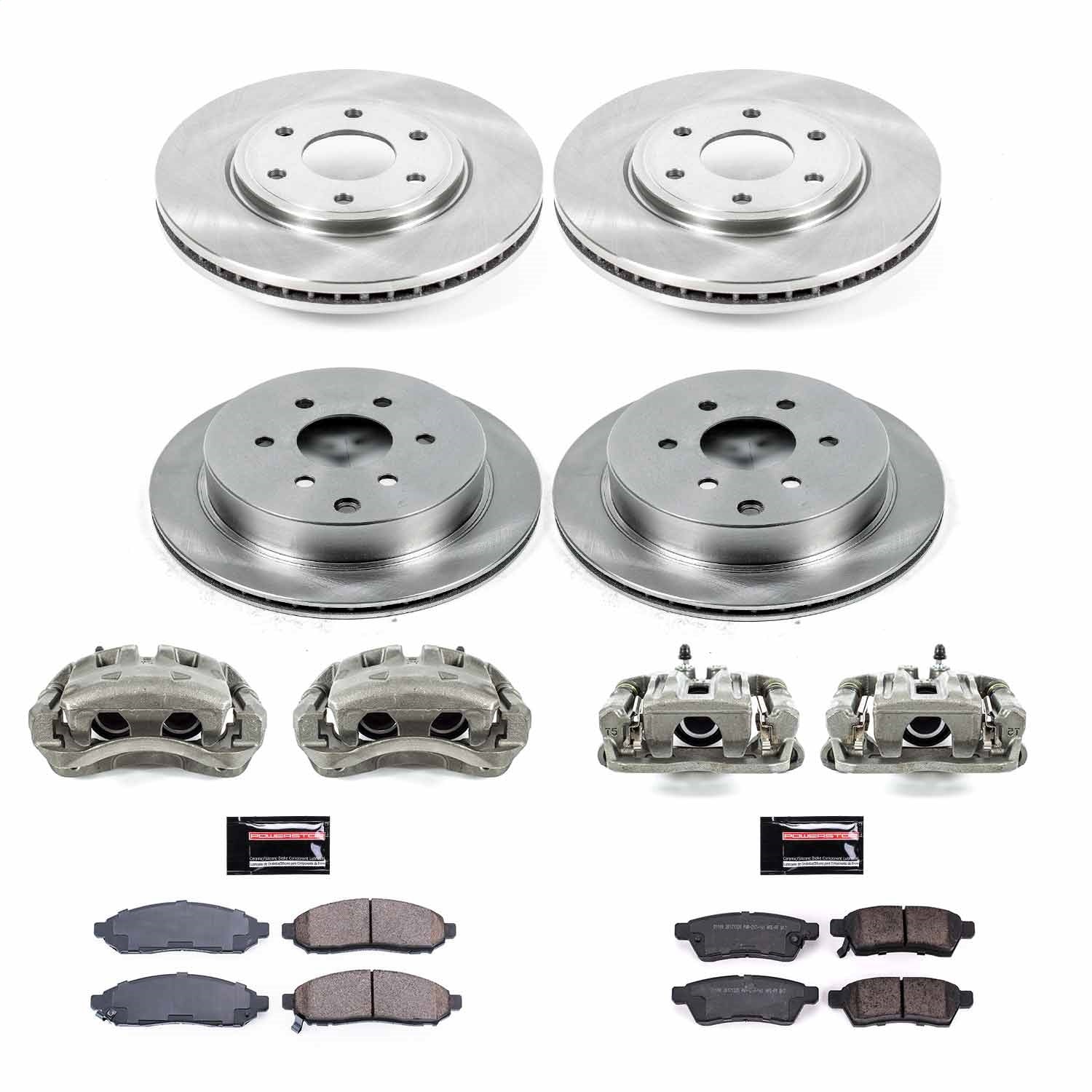 PowerStop - Front and Rear OE Stock Replacement Low-Dust Ceramic Brake Pad, Rotor and Caliper Kit