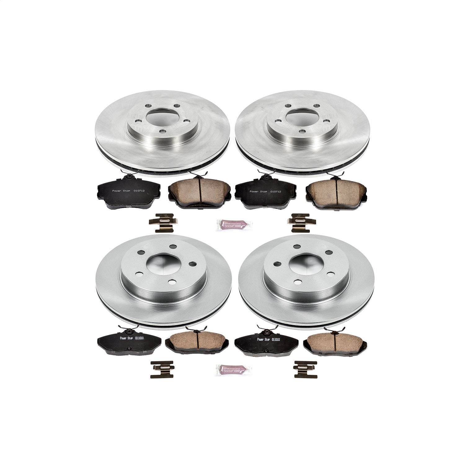 Power Stop - Front and Rear OE Stock Replacement Low-Dust Ceramic Brake Pad and Rotor Kit