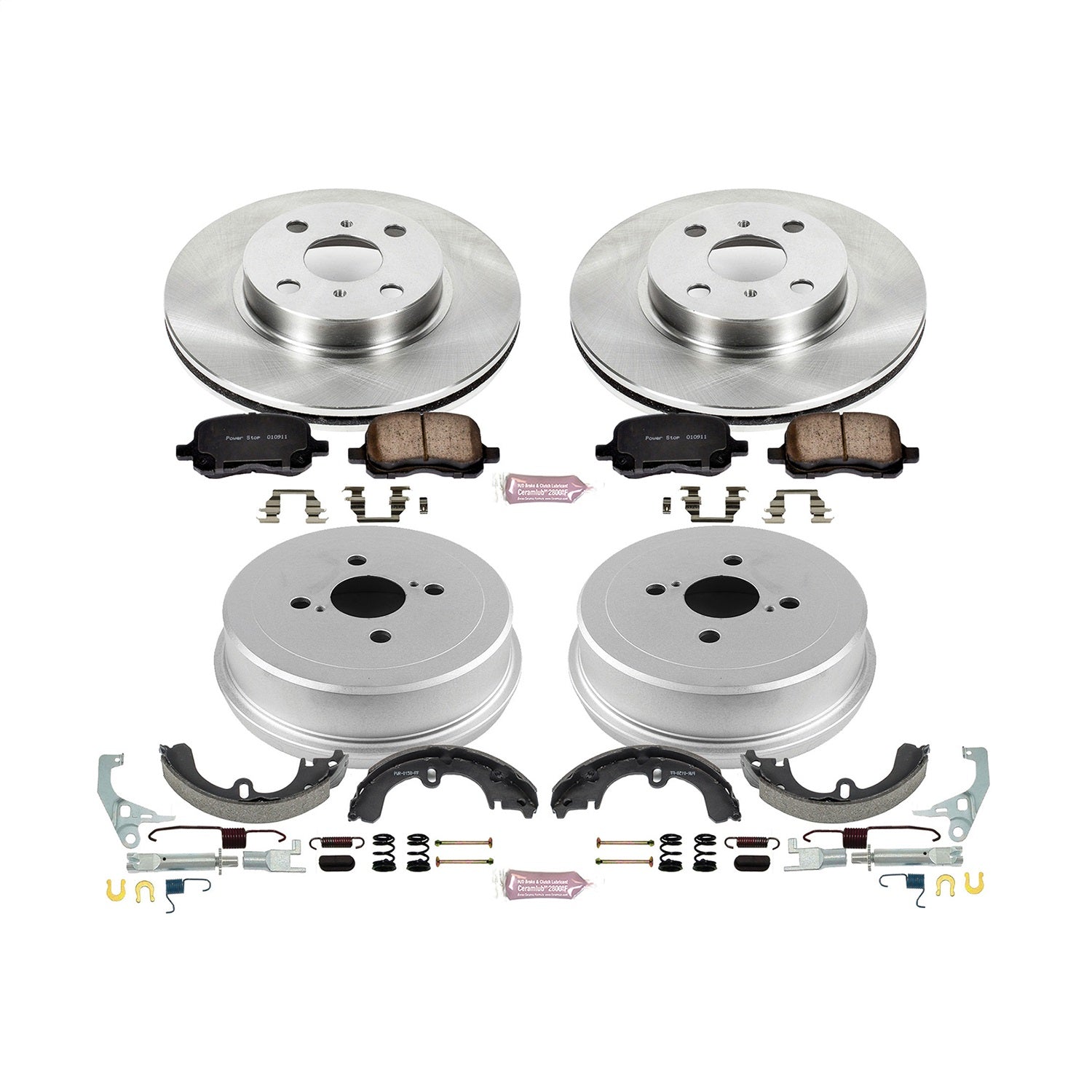 OE Stock Replacement Low-Dust Ceramic Brake Pad, Rotors with Drum + Shoe Kit