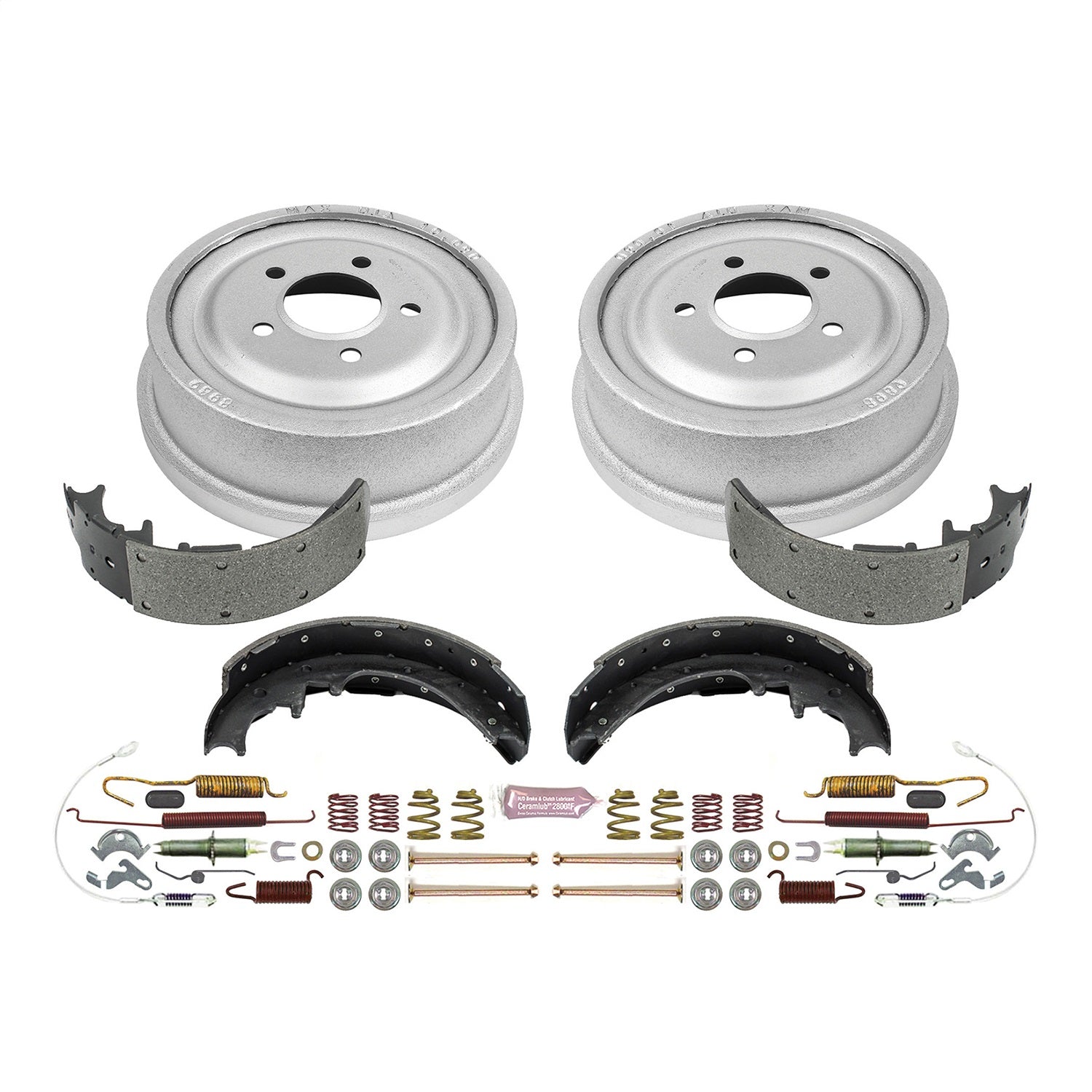 DIRECT REPLACEMENT KIT: COATED DRUMS, SHOES W/ HOLD DOWN AND ADJUSTER KIT