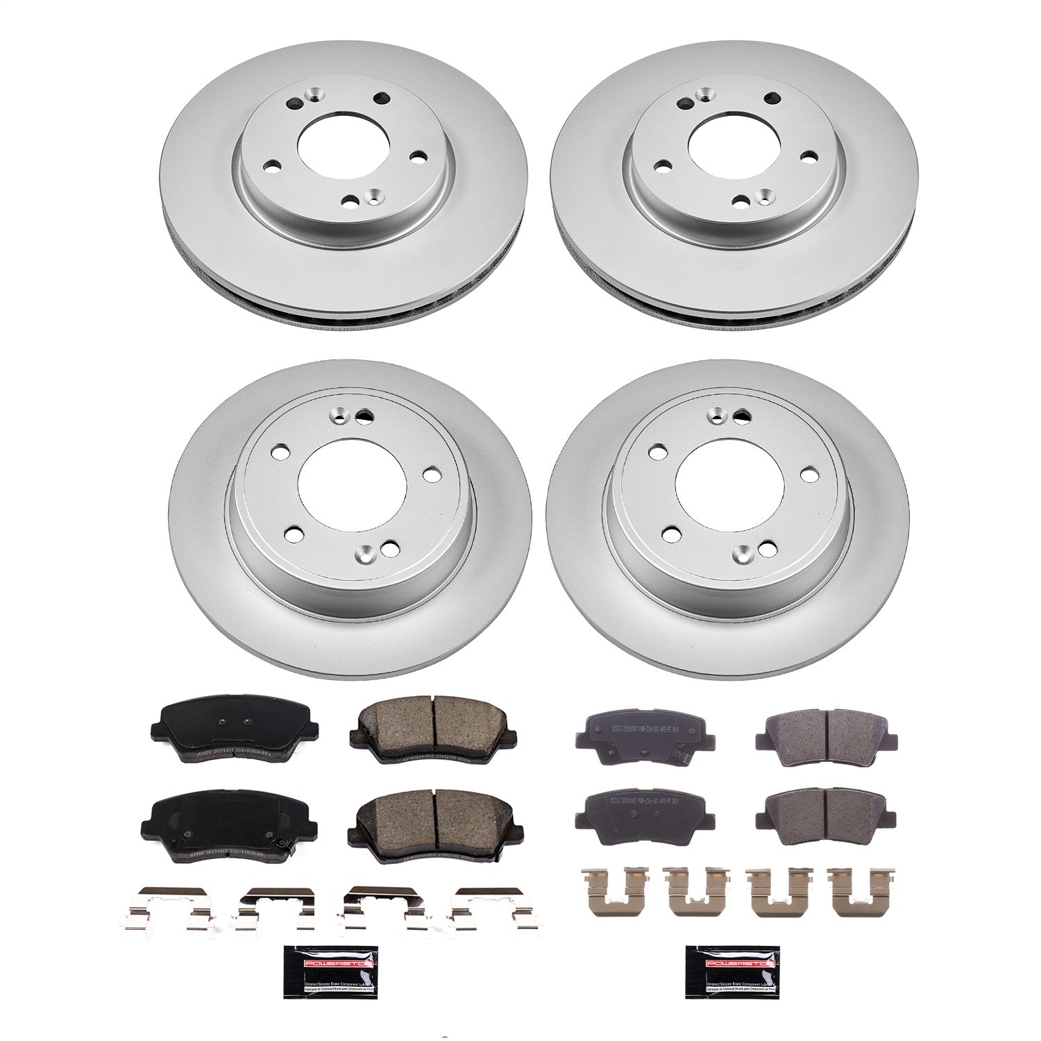 PowerStop - Front and Rear Genuine Geomet Coated Rotor and Low-Dust Ceramic Brake Pad Kit