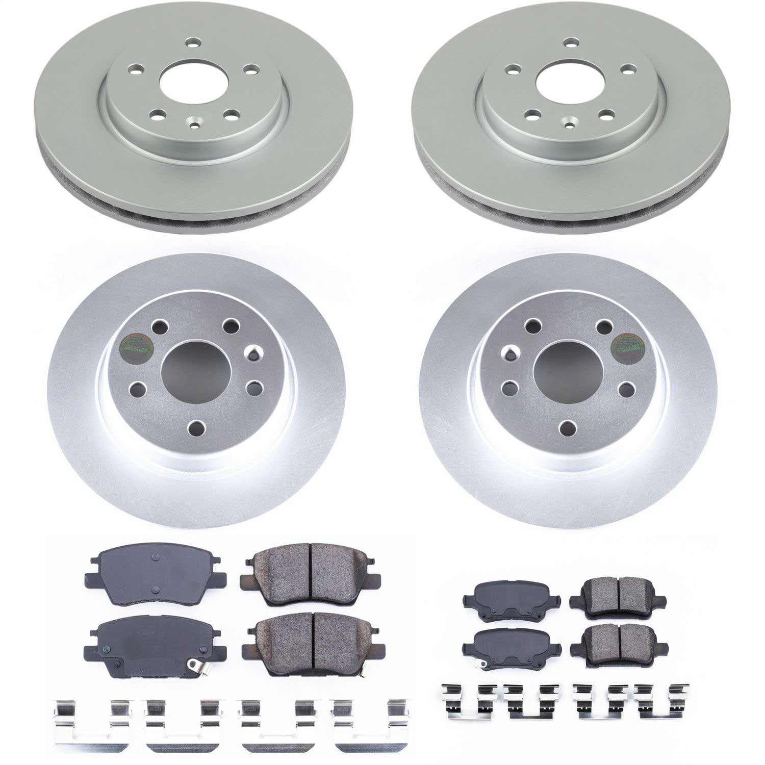Power Stop - Front and Rear Genuine Geomet Coated Rotor and Low-Dust Ceramic Brake Pad Kit