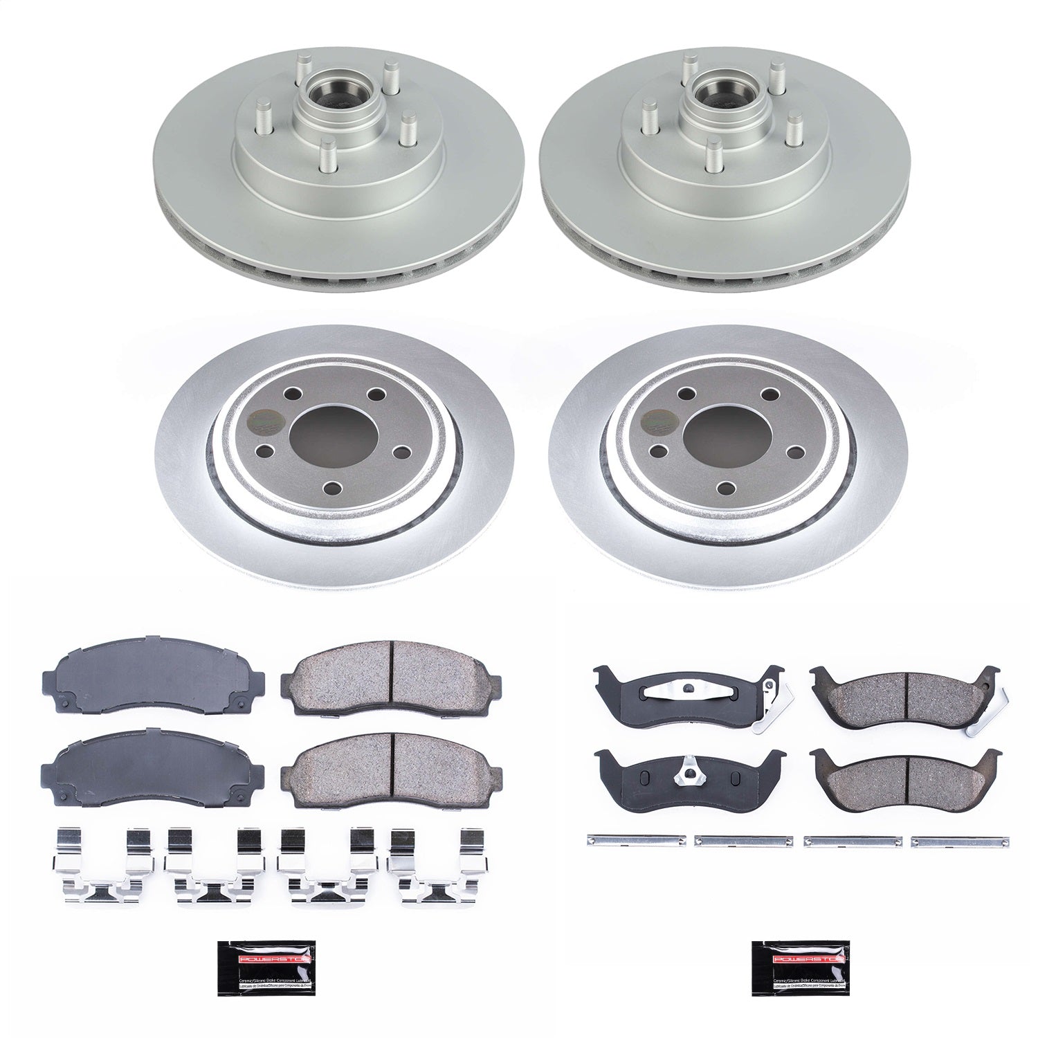 Power Stop - Front and Rear Genuine Geomet Coated Rotor and Low-Dust Ceramic Brake Pad Kit