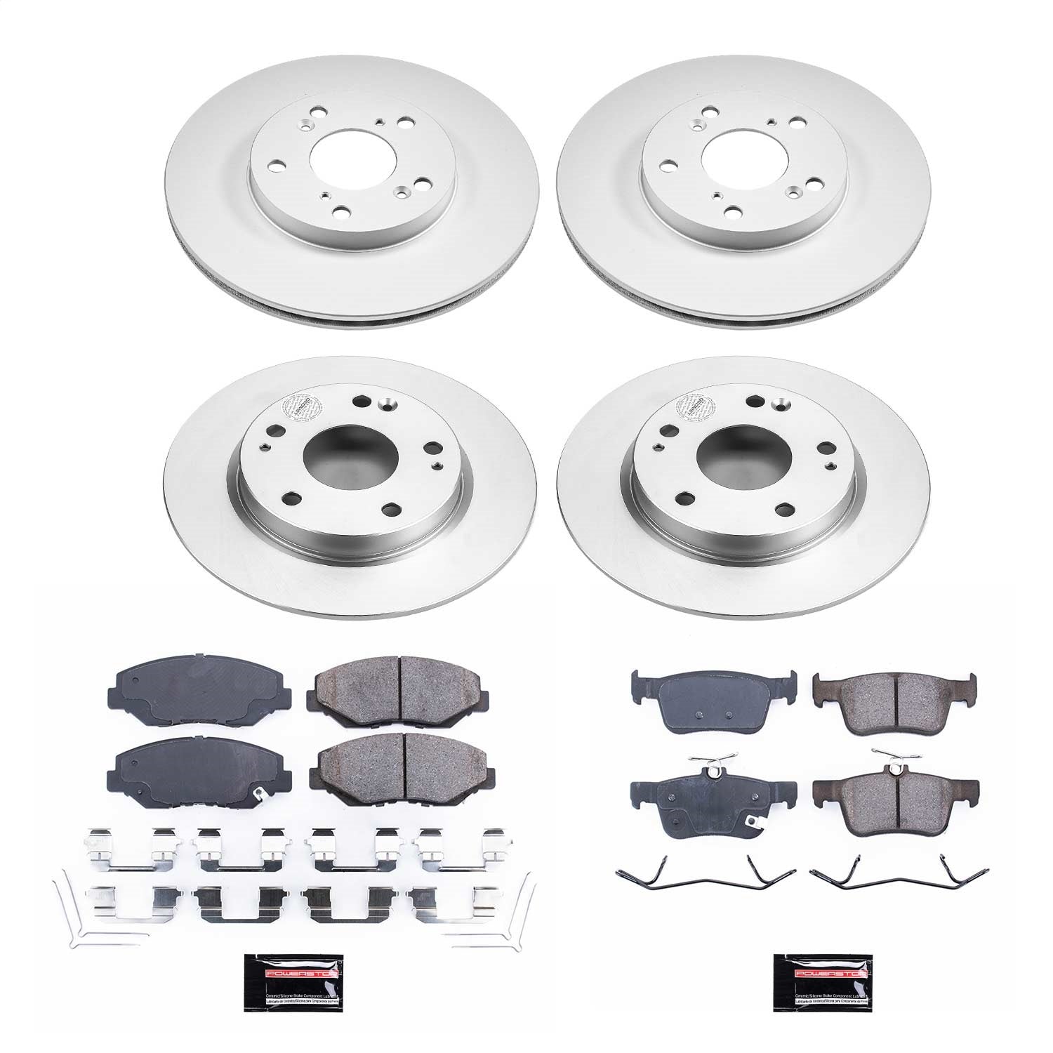 Power Stop - Front and Rear Genuine Geomet Coated Rotor and Low-Dust Ceramic Brake Pad Kit