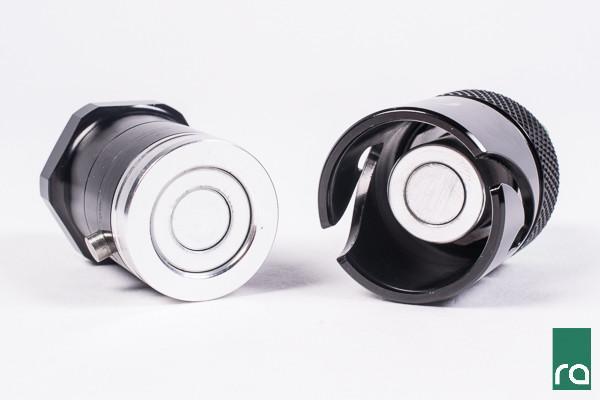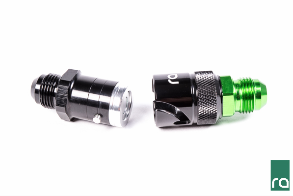 Simply push and twist the knurled machined surface. They are designed for use in fuel or oil applications and are available in -6AN and/or -8AN flare fittings. The couplers have been successfully tested on Radium's test bench at 150psi engaged and disengaged.