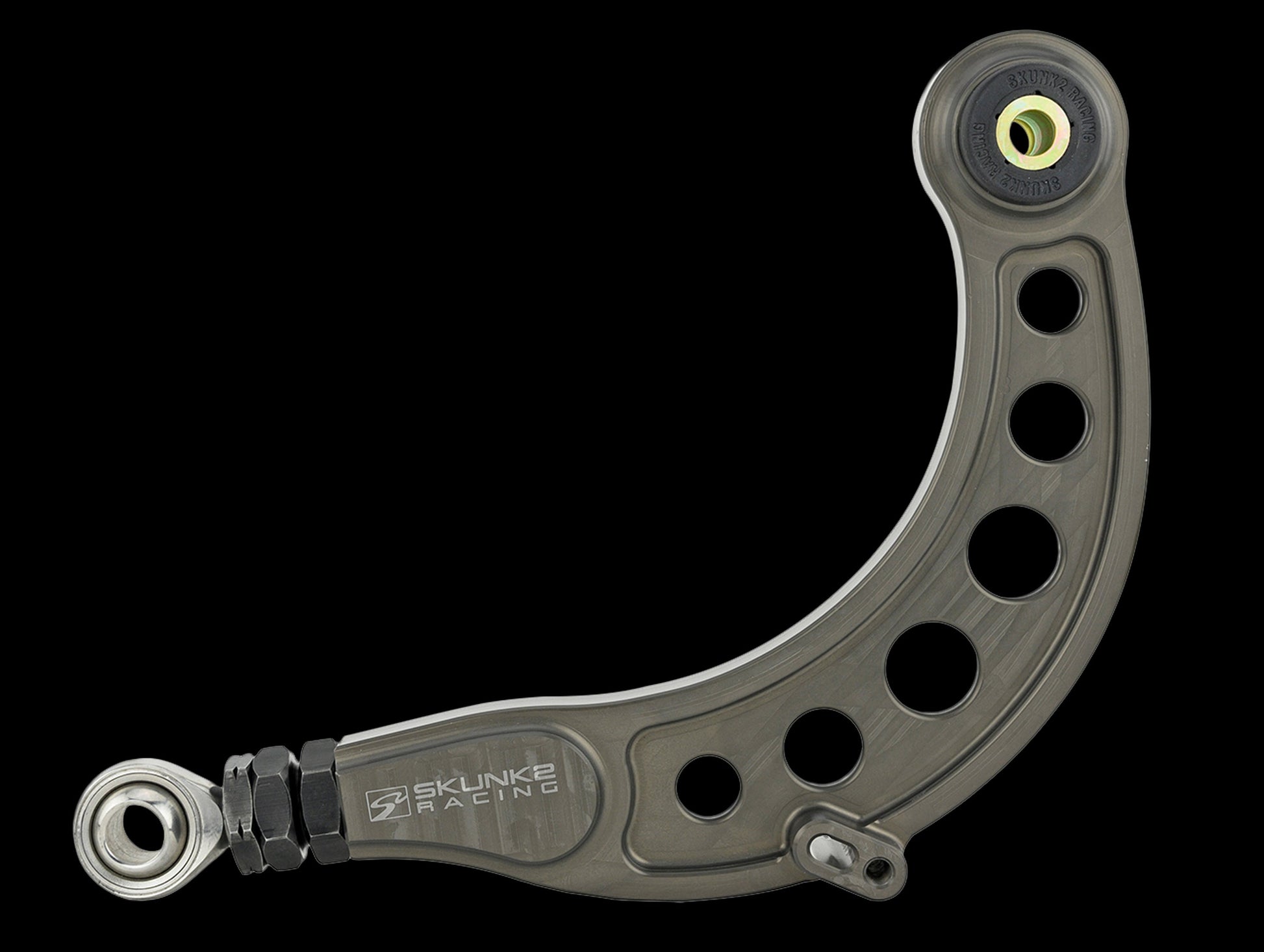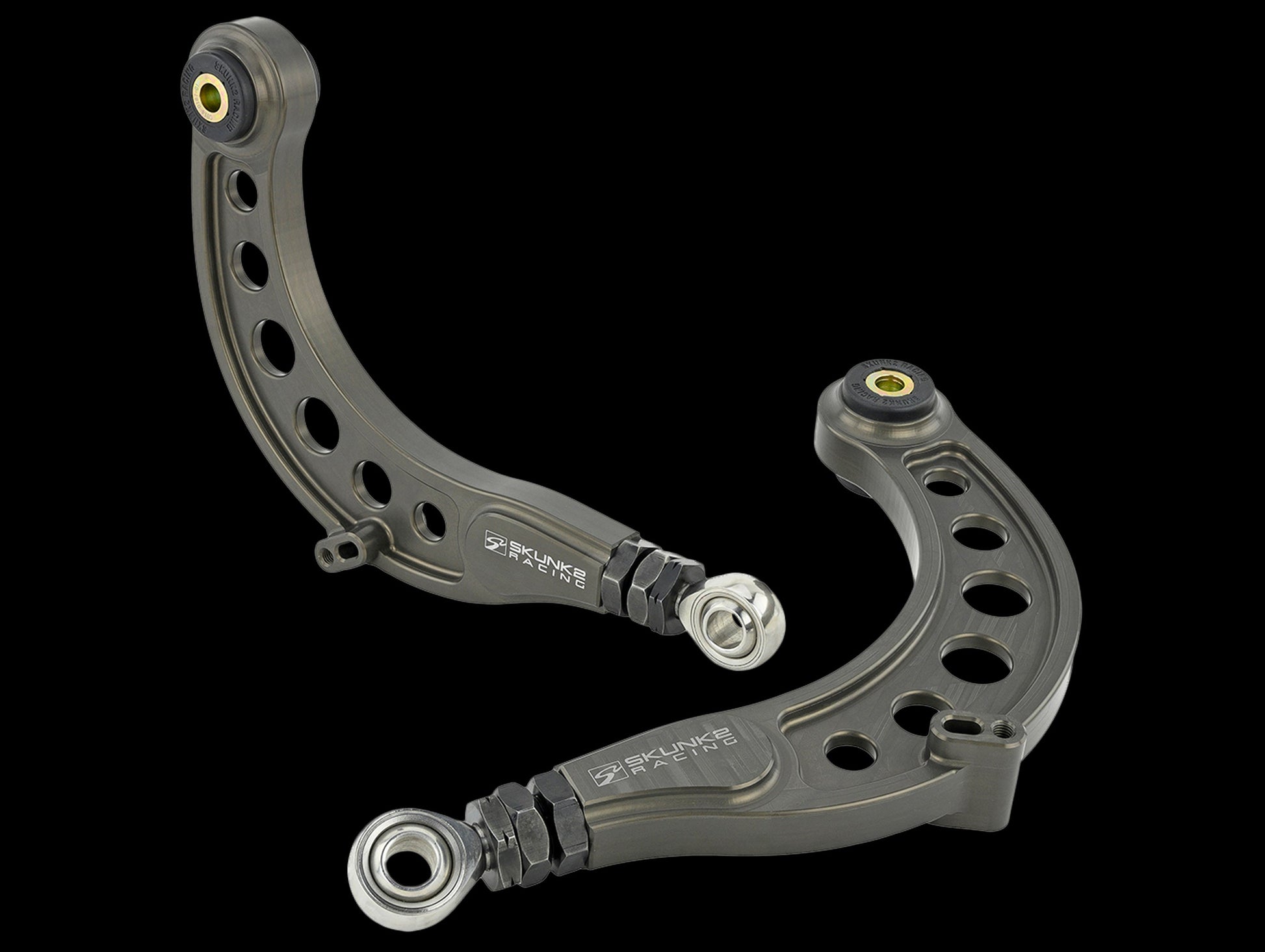 Skunk2’s Rear Camber Kit is a must-have for enthusiasts looking to fine-tune their suspension or correct negative camber introduced from lowered ride heights. With the ability to adjust both positive and negative camber, enthusiasts can reduce abnormal tire wear and significantly improve handling and overall stability. Each Skunk2 Rear Camber Kit are CNC machined from aircraft grade 6061 aluminum and anodized for corrosion resistance. Each kit includes Skunk2’s industry-leading, low-deflection polyurethane bushings and spherical bearings that greatly improve OEM suspension geometry by increasing freedom of motion on multiple axes simultaneously and eliminating suspension bind.