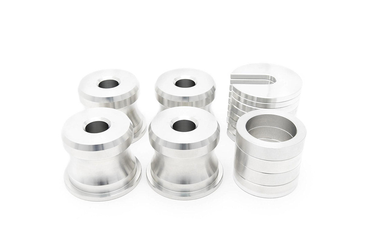 SPL PRO series Bushings are precision CNC machined from 6061-T6 Billet Aluminum for an accurate fit. Kit also includes optional rubber isolation washers to reduce noise transfer from the subframe to the chassis.