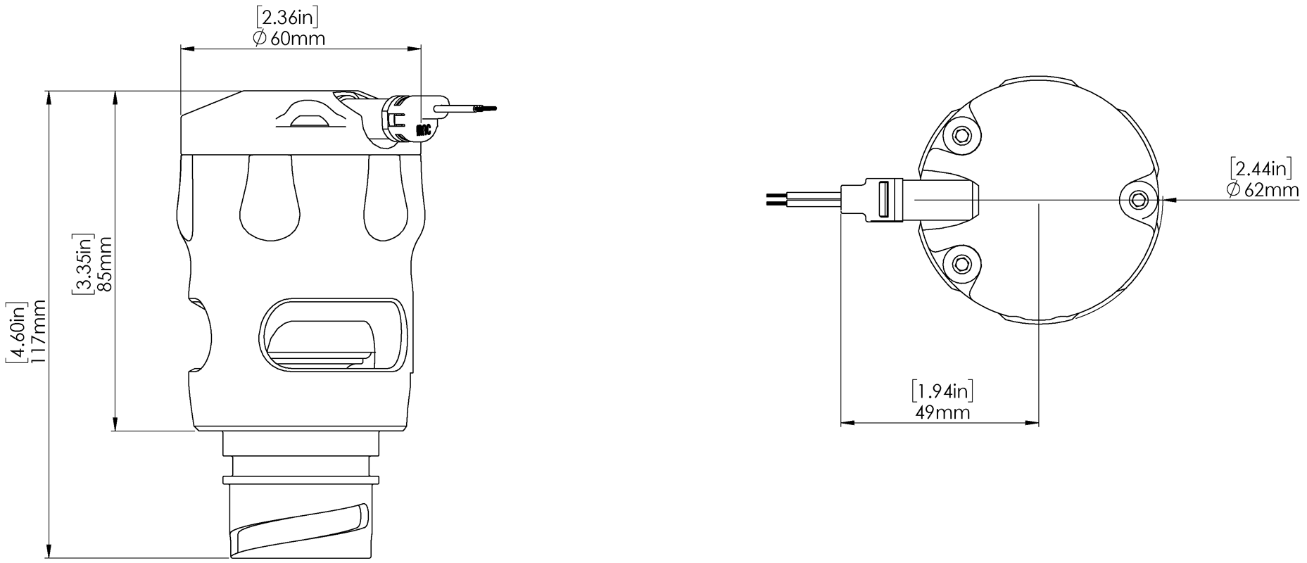 - Tool-free adjustment via a rotating cap and a positive-seal piston