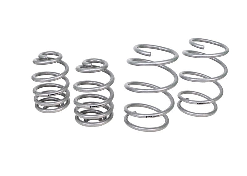 Whiteline Springs deliver improved vehicle performance whilst maintaining safety and ride quality characteristics. This kit contains 3.0kg/mm (168lb/in) front rated springs that provide a 40mm drop while the 6.8kg/mm (371lb/in) rated rears deliver a desirable 30mm to the vehicle. By lowering the vehicles center of gravity, the unique and progressive rate coil design not only improve performance but enhance overall appearance. Developed and manufactured in Europe from the highest quality materials, coating and to the finest tolerances guaranteeing exact fitment. Whiteline Springs are engineered for optimal balance with OEM and aftermarket shocks. For total grip activation match with Whiteline Sway Bar and Essentials kit for unrivalled handling and optimal vehicle performance.
