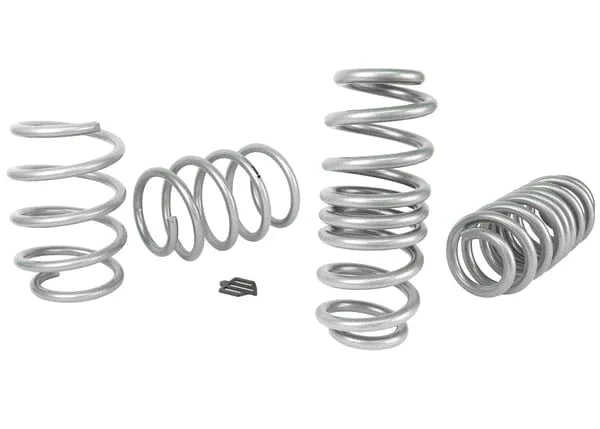 Whiteline Springs deliver improved vehicle performance whilst maintaining safety and ride quality characteristics. This kit contains 4.2kg/mm (235lb/in) front rated springs that provide a 20mm drop while the 6.5kg/mm (364lb/in) rated rears deliver a desirable 20mm to the vehicle. By lowering the vehicles centre of gravity, the unique and progressive rate coil design not only improve performance but enhance overall appearance. Developed and manufactured in Europe from the highest quality materials, coating and to the finest tolerances guaranteeing exact fitment. Whiteline Springs are engineered for optimal balance with OEM and aftermarket shocks. For total grip activation match with Whiteline Sway Bar and Essentials kit for unrivalled handling and optimal vehicle performance.